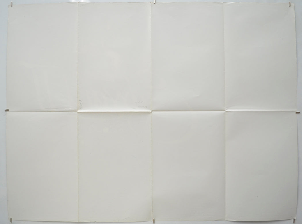 Extremely mild edge wear around the corner tips and edges of the fold lines including a tiny tear at the edge of most fold lines, tiny tear and mild edge wear on the right edge, 4 cm diagonal tear along with approximately seven smaller tears on the bottom edge, extremely mild edge wear on the left edge, several small white creases on and just above the bottom edge along with some additional light surface creasing, 2 to 5 pinholes near every corner and the center of the top and bottom edges, 2 pinholes near the bottom of the left and right vertical fold lines, two pinholes to the left of the yellow credits, mild fold wear (white stress marks on all fold lines and a small tear at the center and right fold intersections), title written on the back in biro (only noticeable on the front if the poster is held up to the light / backlit), otherwise good.