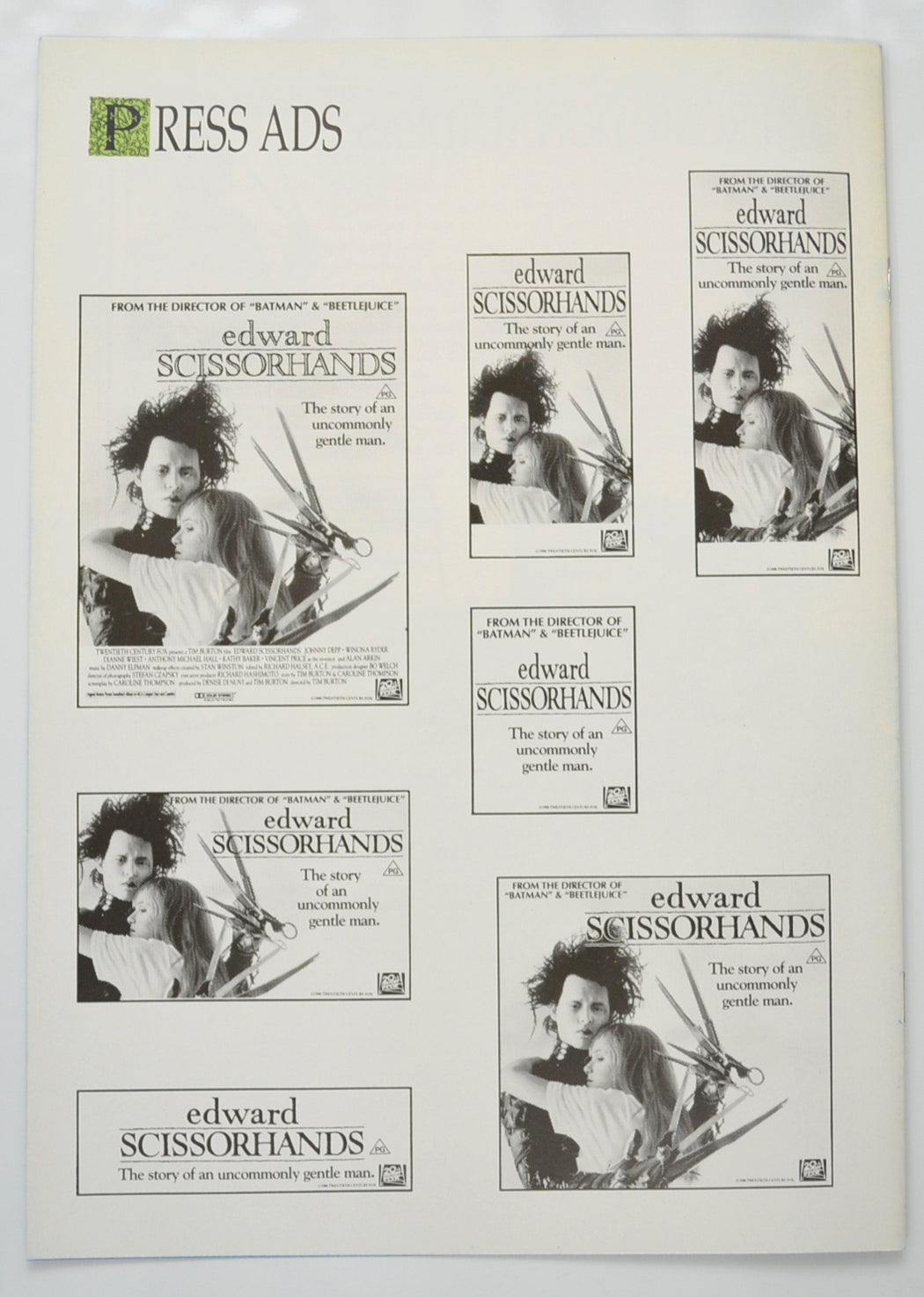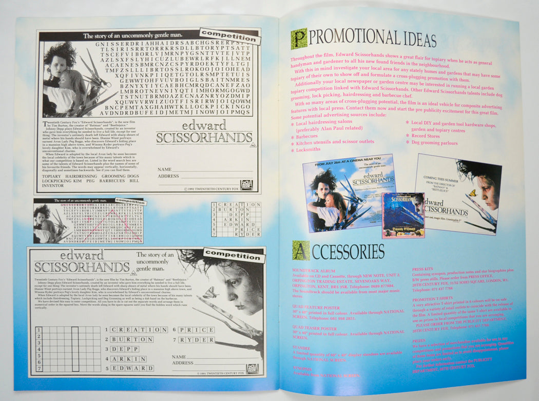 “Edward Scissorhands” Original 8 Page Cinema Exhibitors Campaign Pressbook (UK)