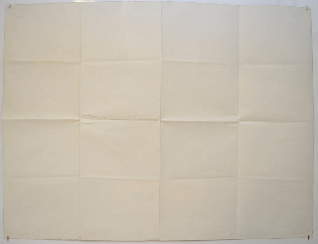 Tiny white spot of print loss near the top of the right edge, two extremely tiny tears and mild creasing around the bottom of the left edge, tiny tear and very mild creasing on the bottom edge, extremely mild fold wear (note there are three horizontal fold lines), light surface creasing around couple of the fold intersections, Otherwise Very Good!