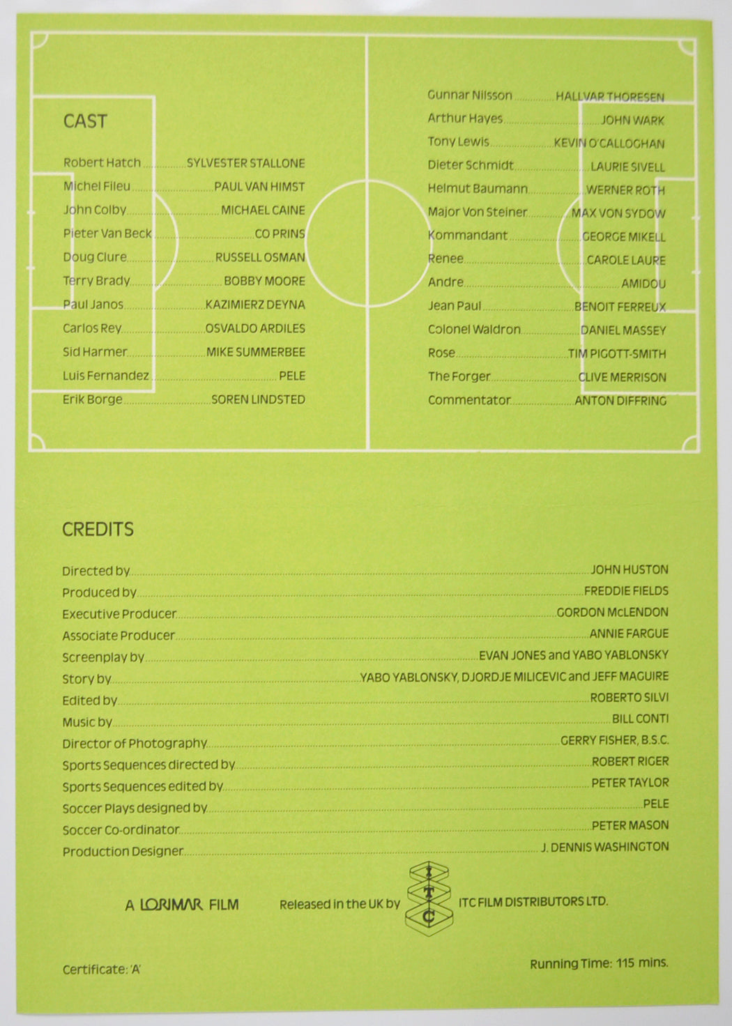 “Escape To Victory” Original Cinema Exhibitors Press Synopsis / Credits Sheet (UK)