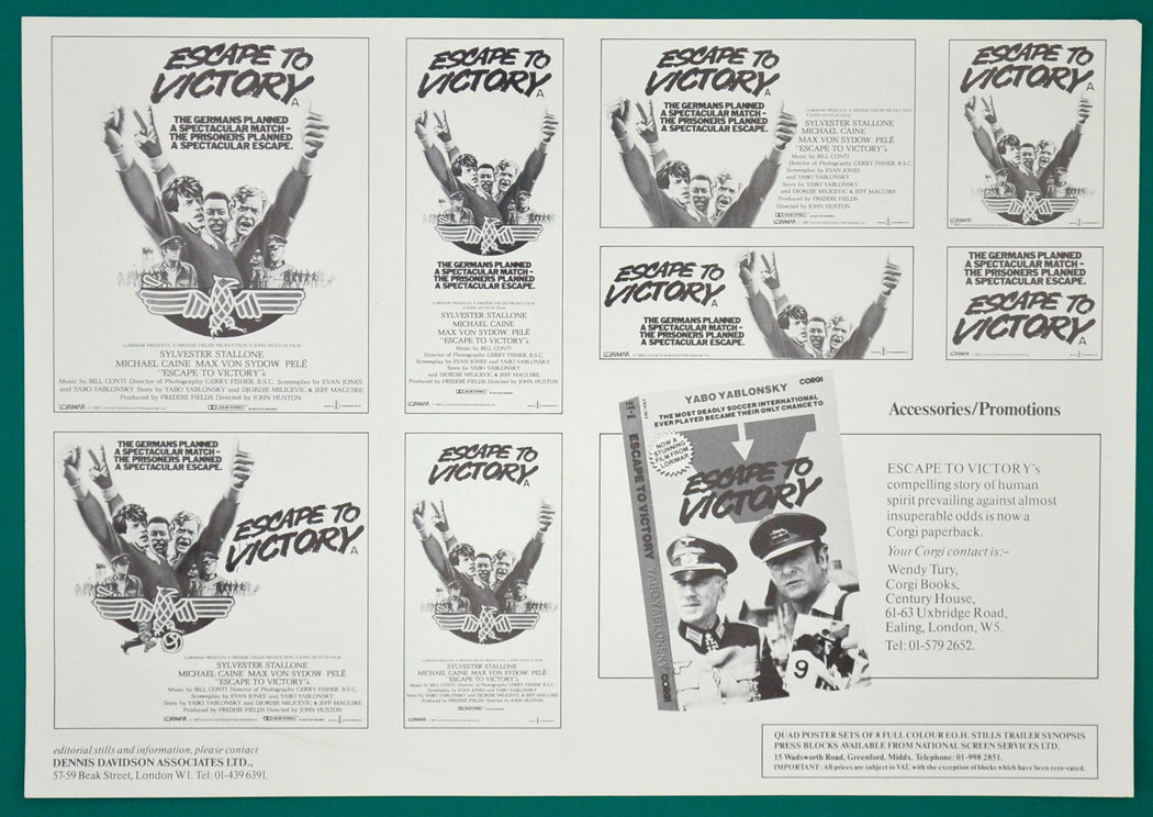 “Escape To Victory” Original Cinema Exhibitors Synopsis / Credits Sheet + Advertising Blocks and Accessories Sheet