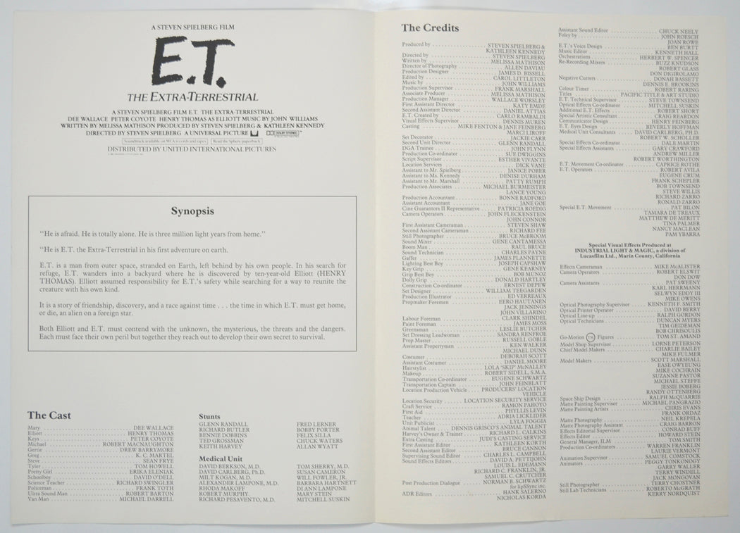“E.T. The Extra Terrestrial” Original Cinema Exhibitors Press Synopsis / Credits Booklet (UK)