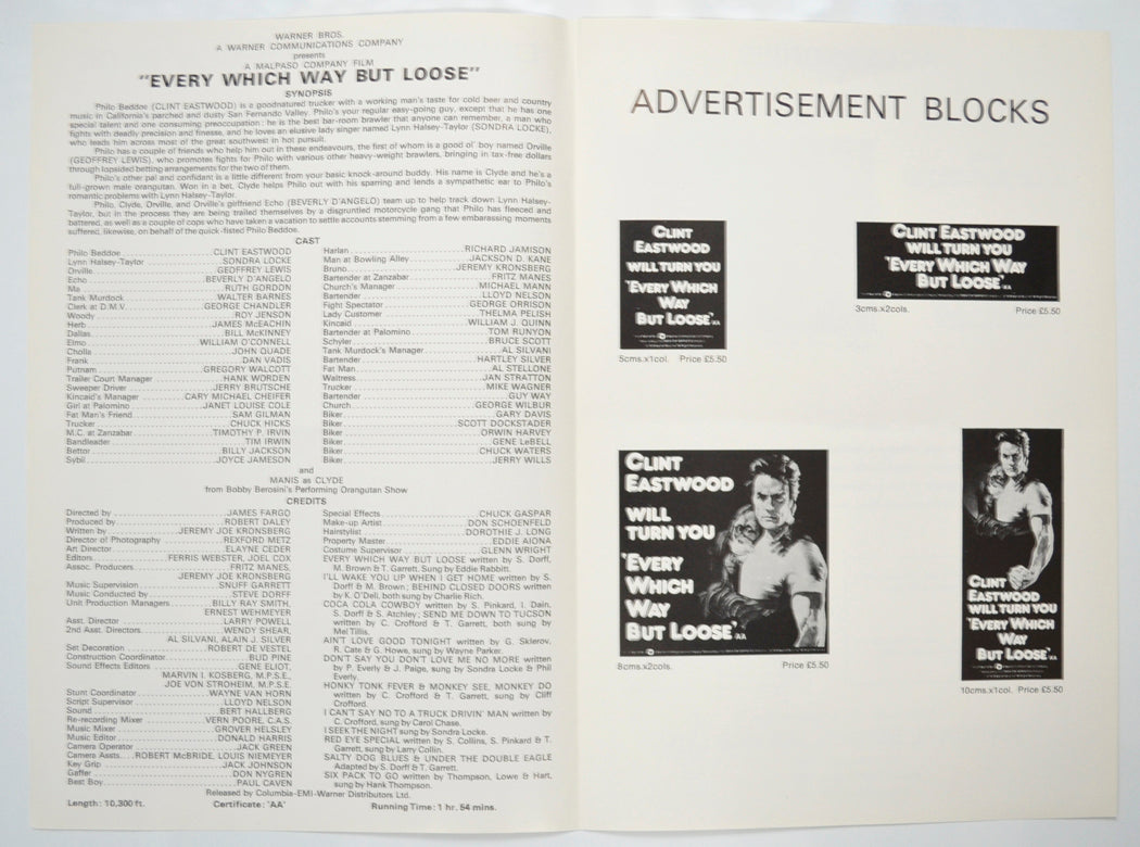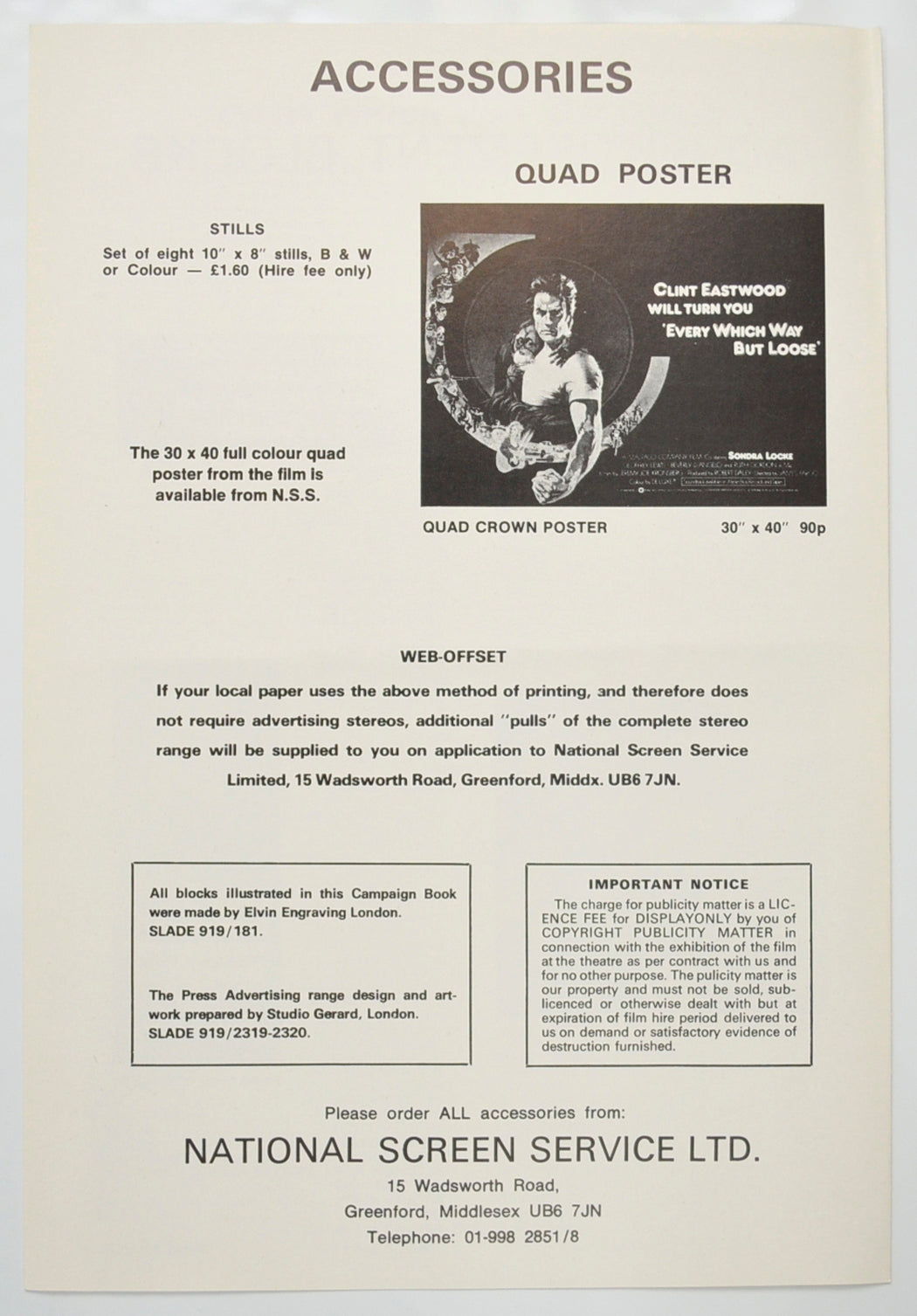 “Every Which Way But Loose” Original 4 Page Cinema Exhibitors Campaign Pressbook (UK)