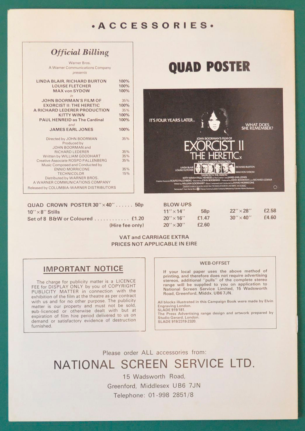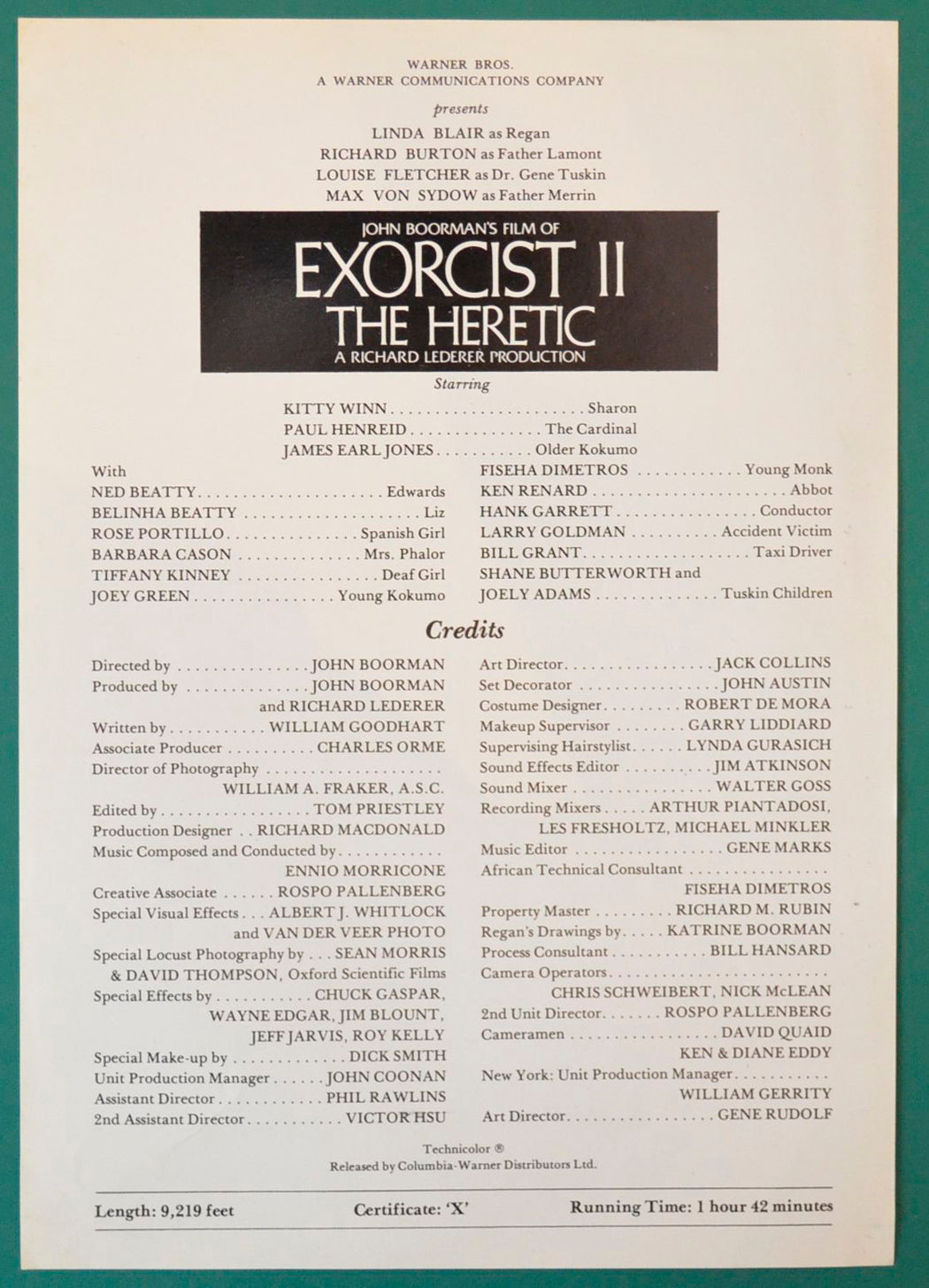 “Exorcist II : The Heretic” Original 8 Page Cinema Exhibitors Campaign Press Book + Synopsis / Credits Sheet