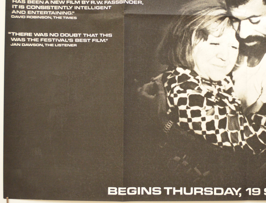 “Fear Eats The Soul” (a.k.a. Angst essen Seele auf) Original Quad Poster - Film Poster - Movie Poster