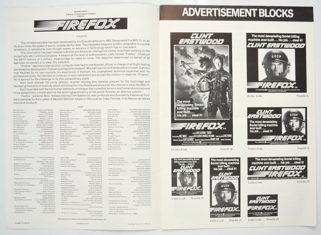 “Firefox” Original 8 Page Cinema Exhibitors Campaign Pressbook (UK)