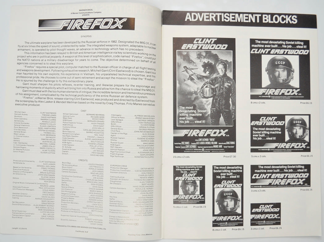 “Firefox” Original 8 Page Cinema Exhibitors Campaign Pressbook (UK)