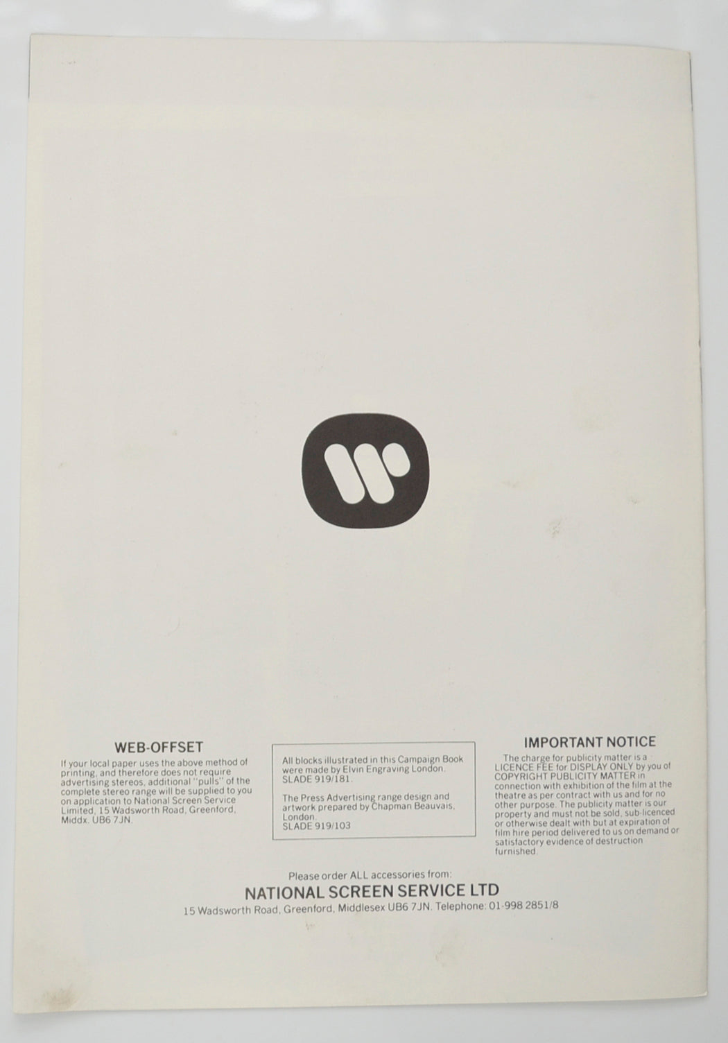 Original 8 Page Cinema Exhibitors Campaign Pressbook (UK)