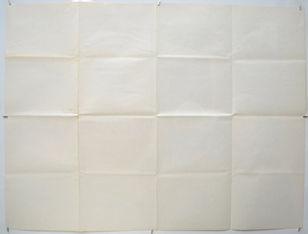 Light surface creasing around the top right corner fold segment, a couple of tiny colour print dots near the top left corner, extremely mild fold wear including additional creasing around the right vertical fold line and some of the intersections (note there are three horizontal and three vertical folds), slight Browning to the back of the center and right vertical fold lines and the back of the right quarter of the top horizontal fold (only noticeable on the front if the poster is held up to the light / backlit), otherwise very good!!