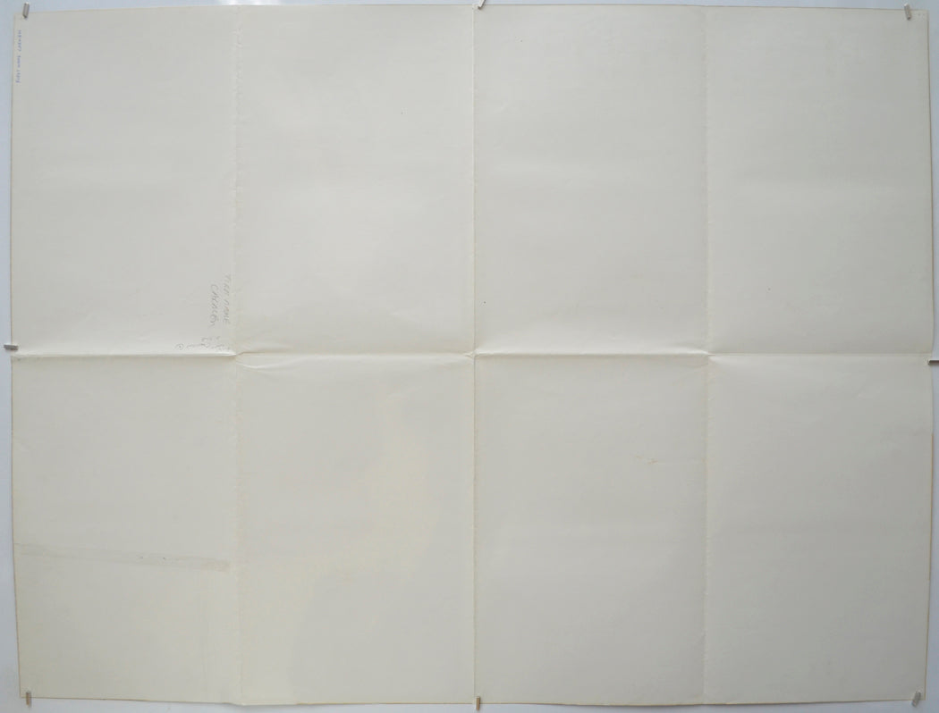 24 cm tear from the right edge across to the bottom of the man’s cheek (has acid free tape on the back), tiny tear at the center of the right edge, 16 cm band of surface creasing from the bottom edge up to the left edge of the previously mentioned tear, 1 cm tear and extremely mild creasing on the bottom edge, 2 to 3 pinholes near every corner, very mild fold wear (some light stress marks on the fold lines and creasing around the intersections), the title has been written on the back of the right edge in blue Biro (only noticeable on the front if the poster is held up to the light / backlit), tiny white surface crease just right of the man’s eye, otherwise good.