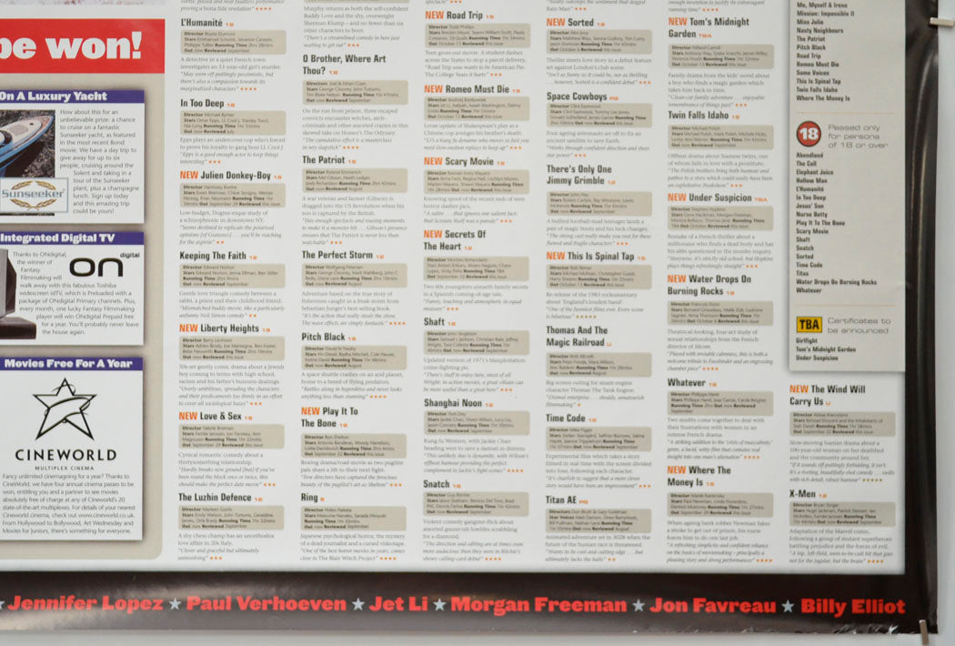 “Flicks October 2000” (Cinema Advertising Poster for Flicks Magazine) Original Quad Poster - Film Poster - Movie Poster