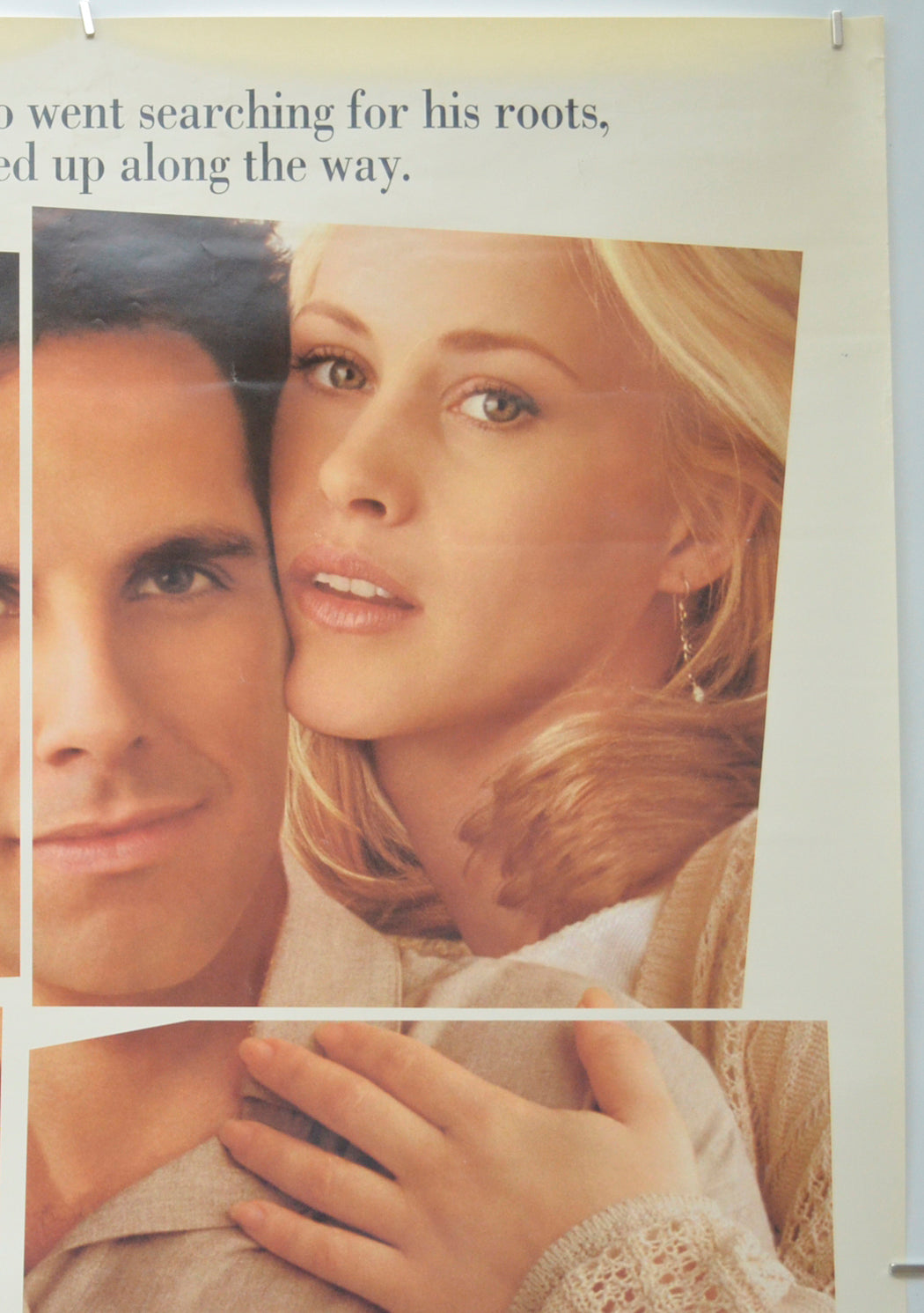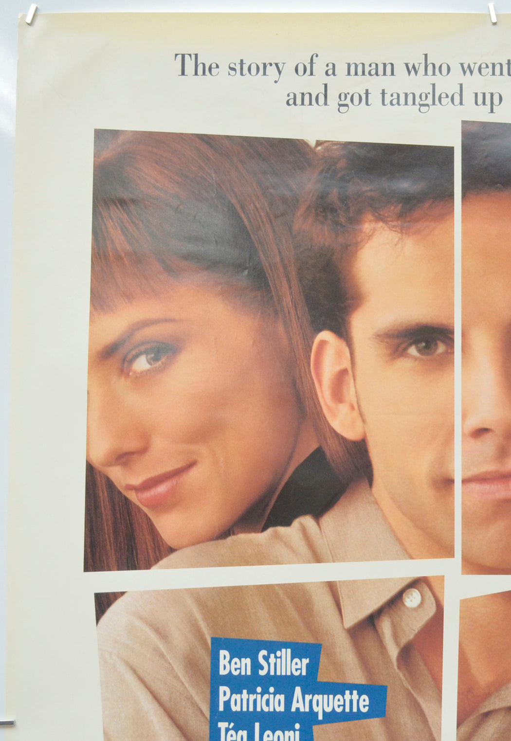 Small crease across the tip of the top left corner, small tear and extremely mild creasing on the right edge, 2 cm tear and a smaller tear near the bottom of the left edge along with mild creasing, two extremely tiny tears and very mild creasing at the top of the left edge, two small patches of blu-tac residue on the back of the bottom of the left edge (these are lightly visible on the front but could probably be removed with care), very light surface creasing around the top and bottom edges, band of tiny light surface creases from top to bottom going through the face of the woman on the left, tiny white surface crease just right of Stiller’s forehead and a small crease across the bridge of the nose of the woman on the right, A Cinema address has been written on the back of the bottom of the poster (only noticeable on the front if the poster is held up to the light / backlit), very faint patch of blu-tac grease below the first and last words of the top line of text, otherwise good.