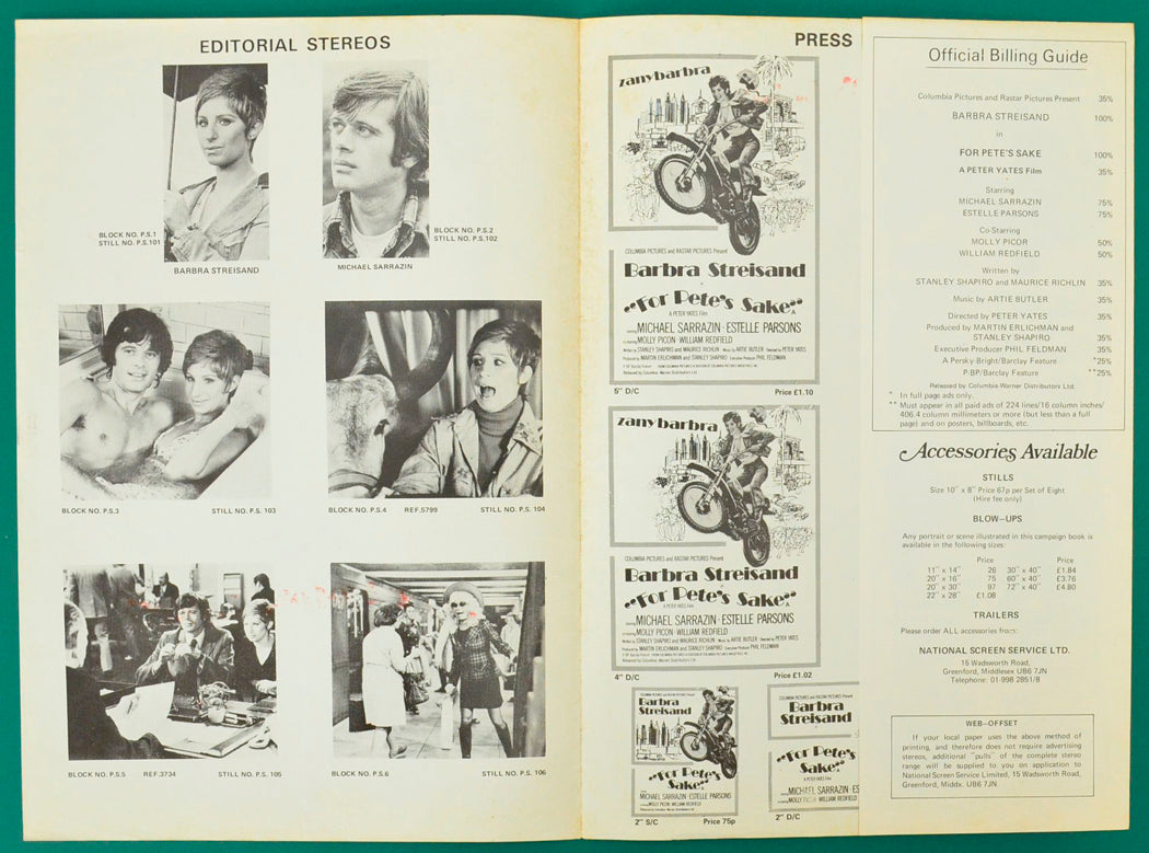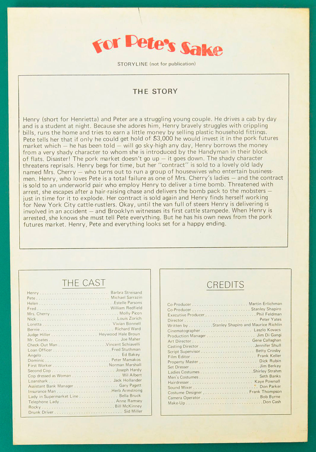 “For Pete's Sake” Original 4 Page Cinema Exhibitor's Campaign Press Book