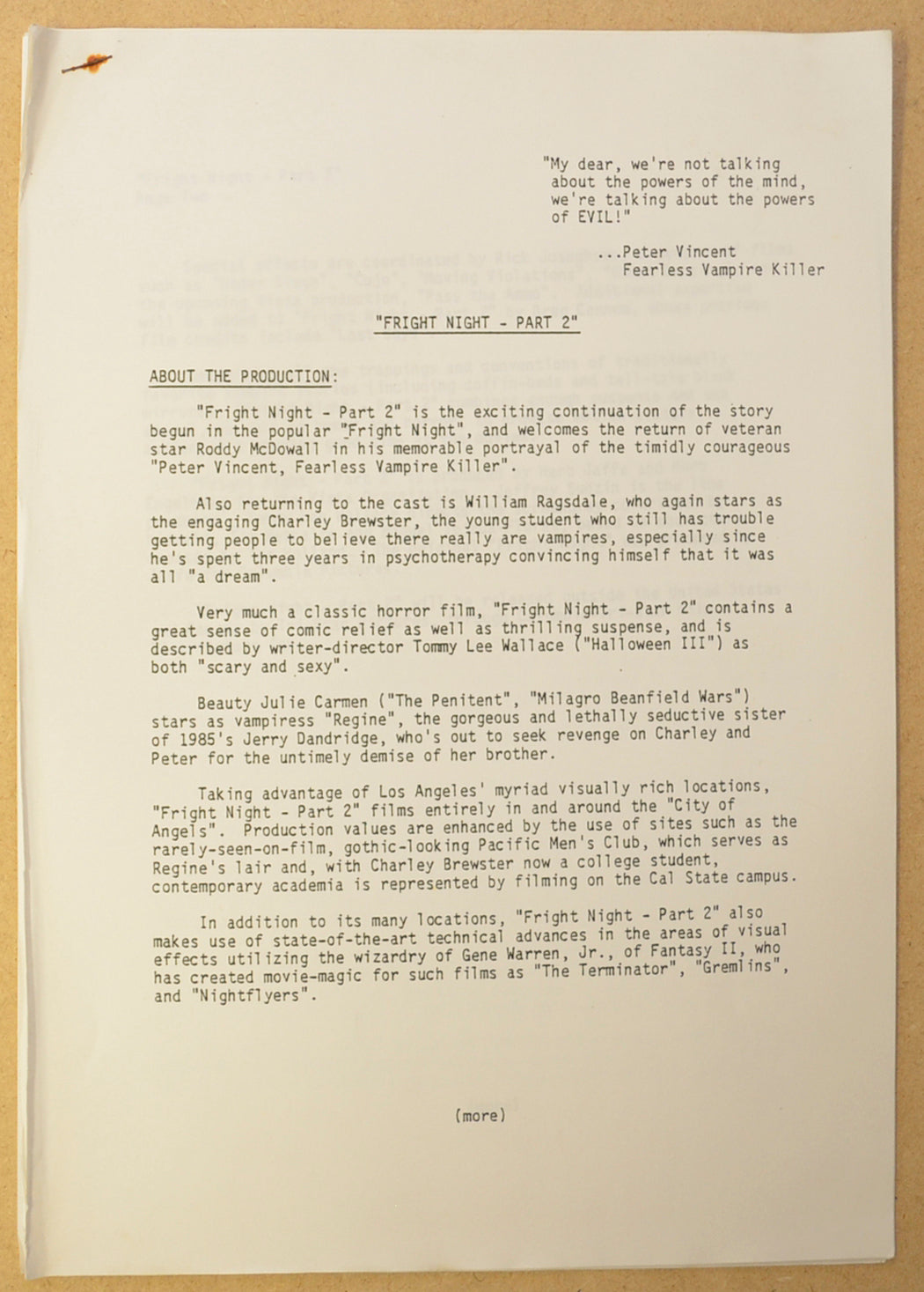 “Fright Night Part 2” Original Cinema Exhibitors Press Kit