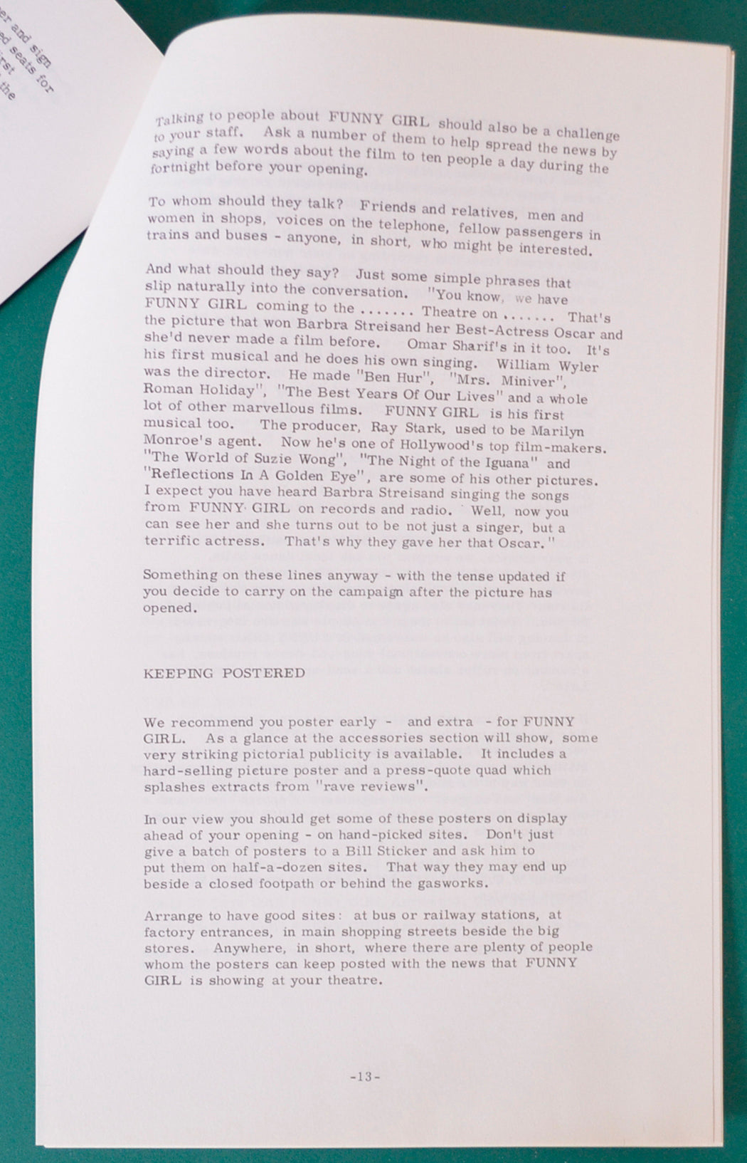 “Funny Girl” Original 4 Page Cinema Exhibitor's Campaign Press Book