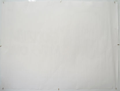 3 cm tear above the center of the left edge (has acid free tape on the back of it), extremely tiny tear near the top of the left edge, extremely tiny tear and approximately 5 tiny creases along the top edge, 1 cm tear near the bottom of the right edge, 2 cm tear along with a 1 cm tear and tiny tear on the bottom edge with some extremely mild creasing, some very light vertical roll creases throughout the poster (these are heavier near the left edge), some additional surface creasing throughout the first 10 inches (25 cm) of the left of the poster including numerous tiny white stress marks within the coloured upward swirl above Godzilla’s head and surrounding white background areas, some dark print has transferred onto some of the creasing near the left edge, small right angled crease near every corner which has a little dark print on it (these are probably marks from a cinema frame), very faint horizontal scuff line just below the top edge (again probably from a cinema frame), 4 cm diagonal light print error line and a small crease below the SAKURA ANDO credit at the top of the right, tiny dark speck just below the top edge (above the YUKI YAMADA credit, otherwise good.