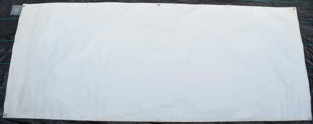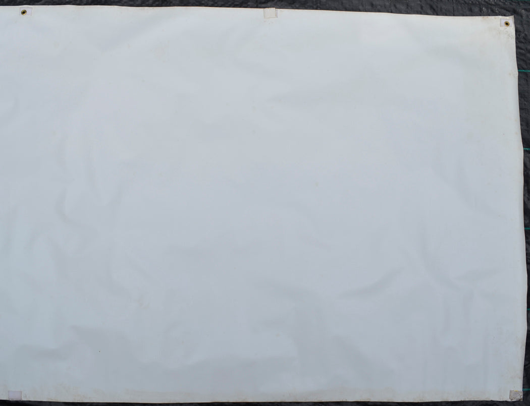 Light patches of dull damp spots around the edges (will probably wash off with a very light detergent solution), small Velcro pad stuck to the bottom center, indentations from a rubber band along the right half of the top and bottom edge areas (should dropout), Velcro pads on the back of the banner, some additional light patches of damp on the back of the edges and the title has been written on the back in Biro, otherwise very good.