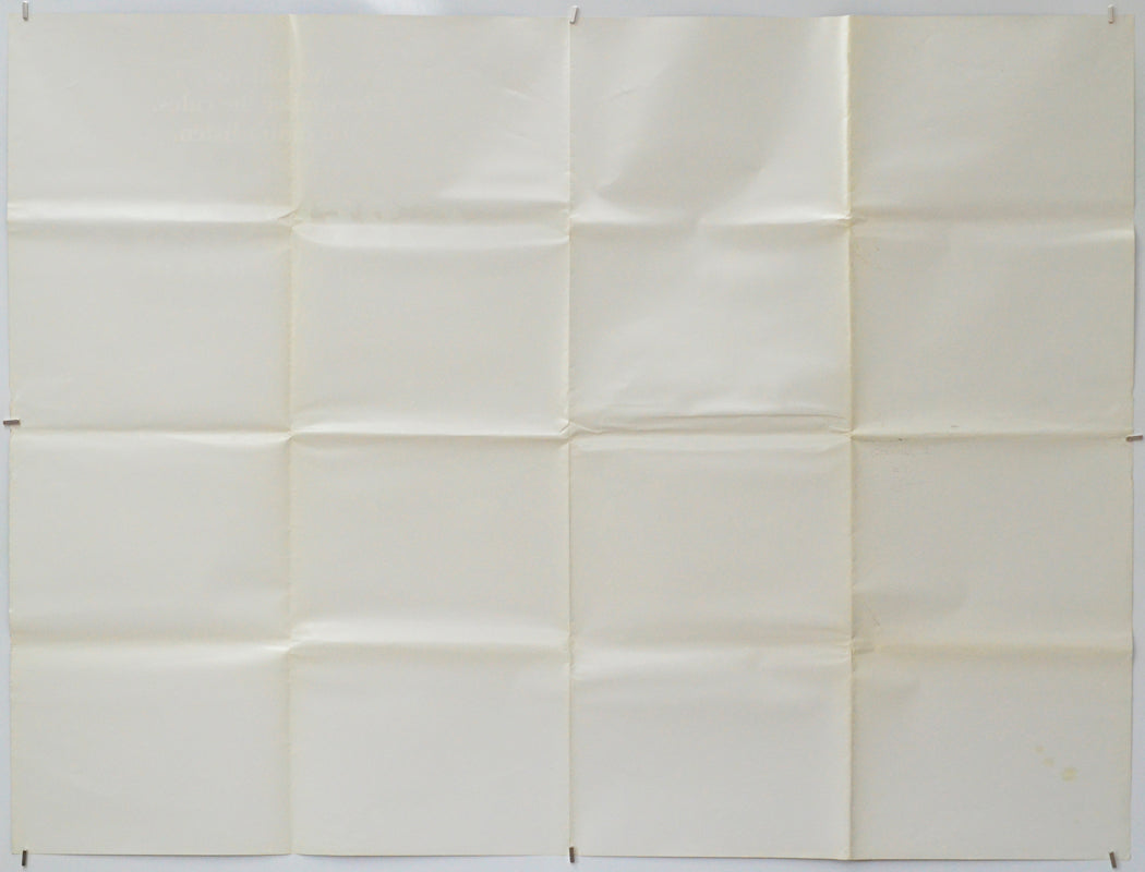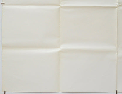 Approximately five tiny tears and very mild creasing/edge wear on the right edge, tiny crease across the tip of the bottom left corner, extremely mild creasing at the center of the left edge, three small grease spots on the back of the bottom left corner area (largest is 1 cm and not noticeable on the front), very mild fold wear (white stress marks on some of the fold lines and creasing around some of the intersections) note there are three horizontal and three vertical folds, very light surface creasing around the top left corner, horizontal crease between the left and center vertical fold lines (just above abd below the center horizontal fold line), slight yellowing to the back of the left vertical fold line (not noticeable on the front), otherwise very good!Double Sided :