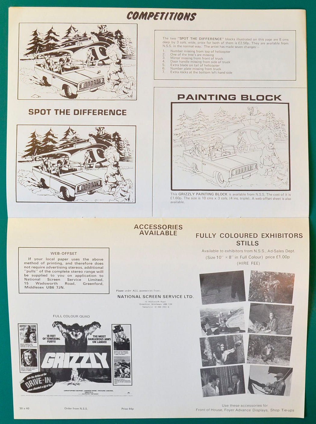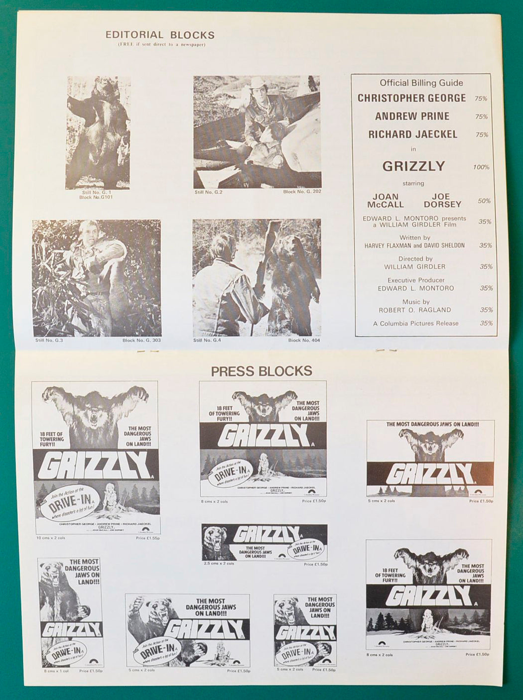 “Grizzly” Original 8 Page Cinema Exhibitors Campaign Press Book