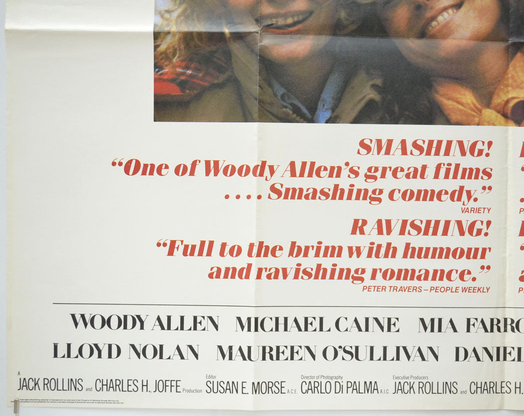 Woody Allen, Michael Caine, Mia Farrow, Carrie Fisher, Barbara Hershey, Lloyd Nolan, Maureen O'Sullivan, Max Von Sydow, Dianne Wiest, Julia Louis-Dreyfus, Julie Kavner, J. T. Walsh, John Turturro, Tony Roberts, Joanna Gleason, Sam Waterston, Daniel Stern, John Doumanian.