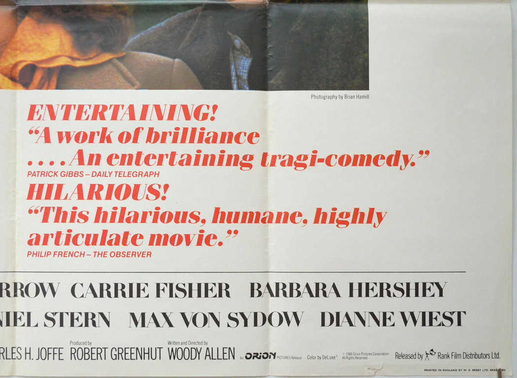 “Hannah And Her Sisters” Original Quad Poster - Film Poster - Movie Poster