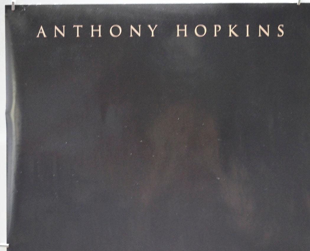 Two extremely tiny tears and extremely mild creasing on the top edge, tiny crease across the tip of the top right corner, three 1 cm tears near the bottom of the right edge, extremely tiny tear and extremely mild creasing on the bottom edge, a couple of small white surface creases near the bottom edge, numerous tiny white surface creases completely across the poster (mostly within the black area on the left of the top half of the poster), light 26 cm slightly diagonal crease from Hopkins forehead down to the bridge of his nose (has several tiny white stress marks on it), a couple of small white surface creases near the top edge, small faint blu-tac grease mark just below the last letter of the title, small white surface crease through Hopkins top lip, otherwise okay.