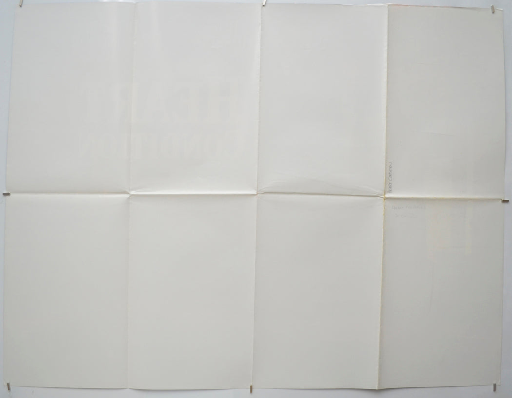 Approximately 4 tiny tears and mild creasing on the top edge, extremely tiny crease across the tip of the bottom right corner, tiny tear and extremely mild creasing at the bottom of the left edge, very mild fold wear (light stress marks on some of the fold lines and creasing around the intersections), title written on the back in biro (only noticeable on the front if the poster is held up to the light / backlit), extremely fine 10 cm horizontal knife cut through Hoskins arm (left), otherwise very good.