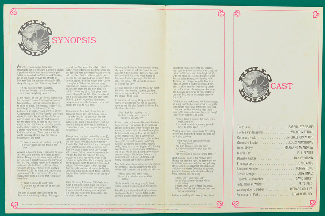 “Hello Dolly!” Original Cinema Exhibitors Synopsis / Credits Booklet