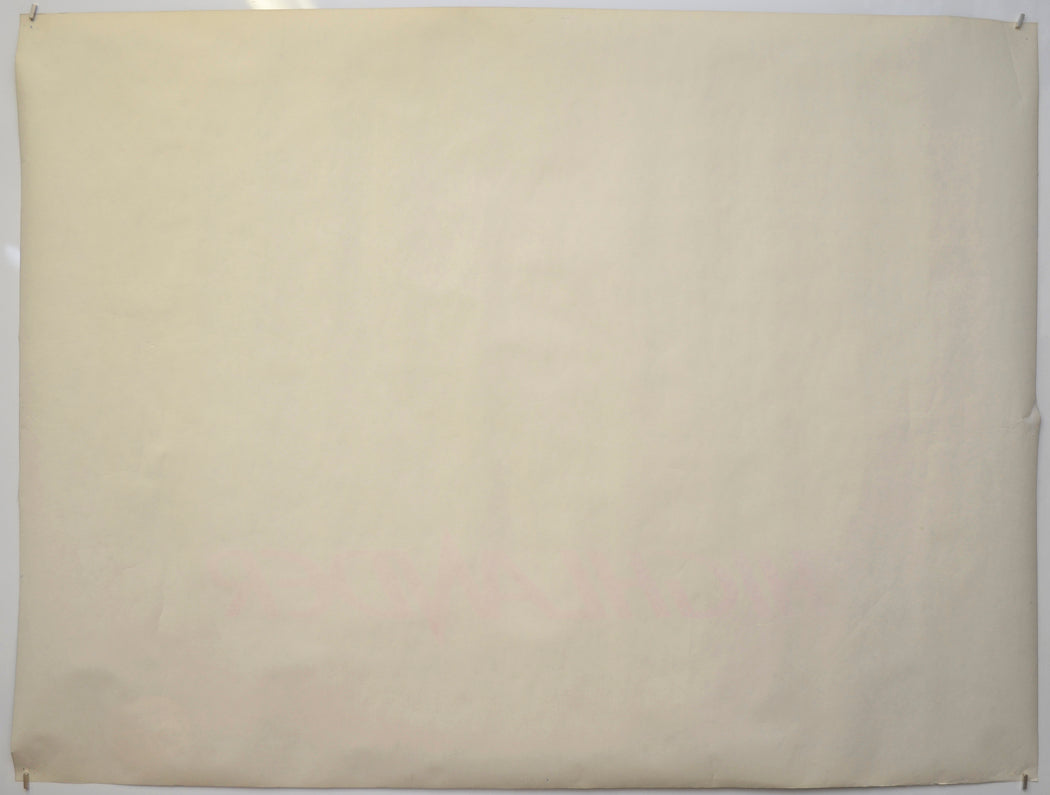 11 cm diagonal crease across the top left corner, small tear on the right edge (less than 1 cm), some light surface creasing near the side edges, a couple of tiny spots of blu-tac grease/residue on the back of the corners (only noticeable on the front if the poster is held up to the light / backlit), small patch of surface paper loss on the back of the center of the left edge (again noticeable on front if backlit), otherwise excellent! Never been folded.