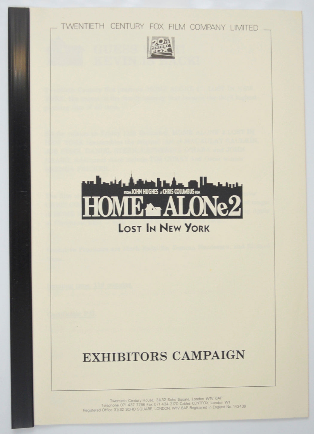 “Home Alone 2 : Lost In New York” Original 14 Page Cinema Exhibitors Campaign Pressbook (UK)