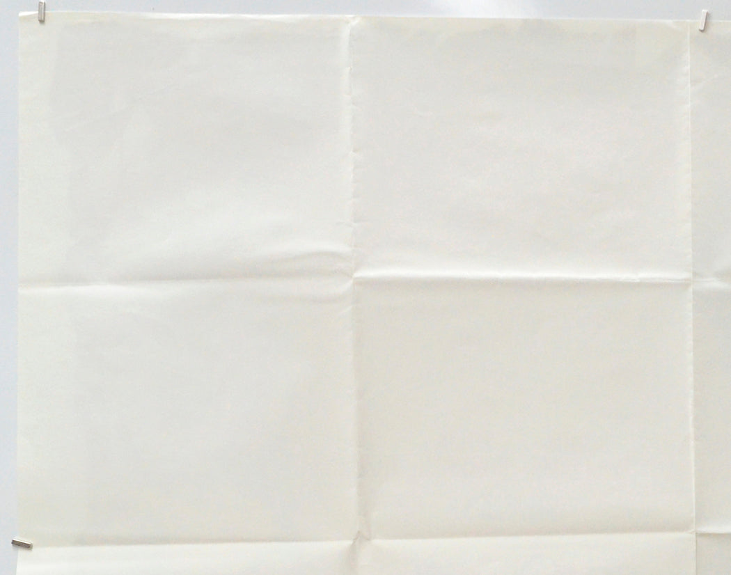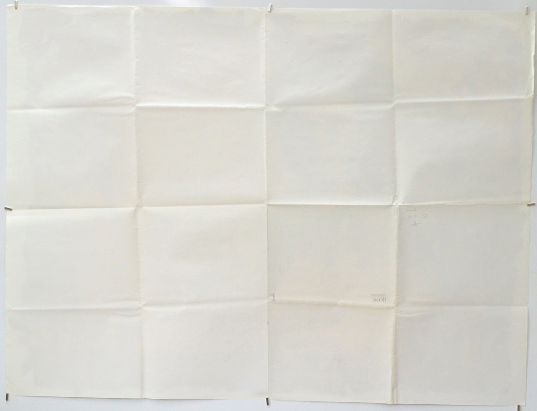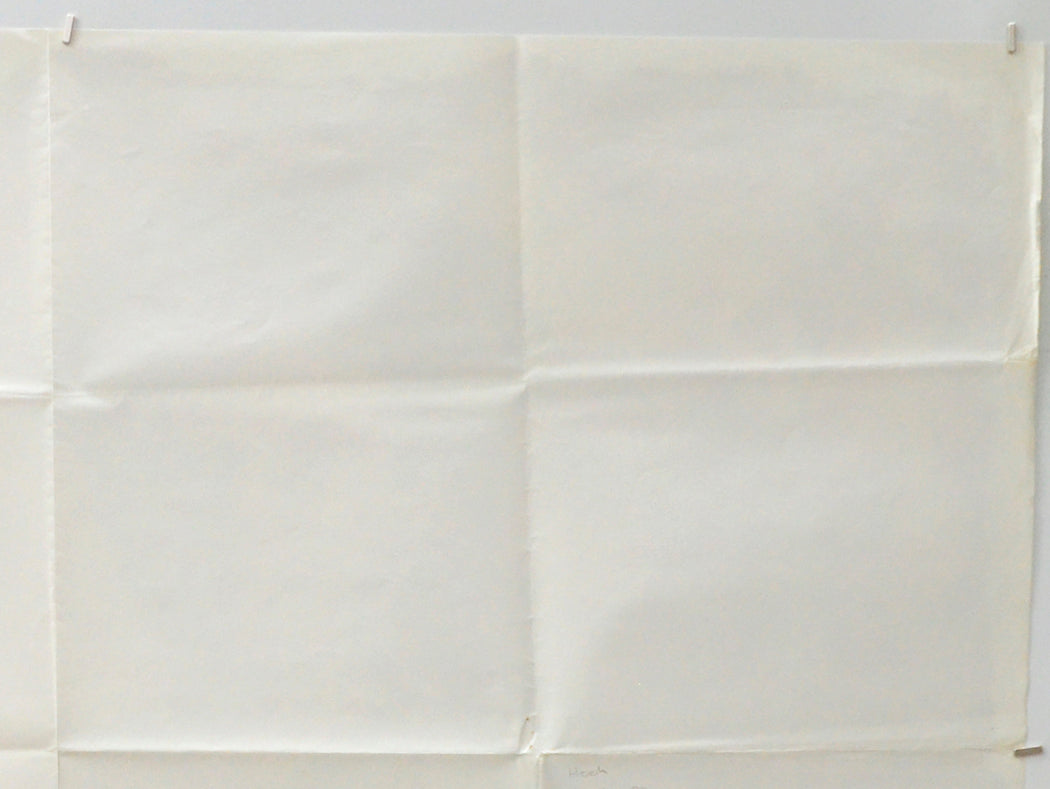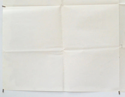 6 cm diagonal crease across the top left corner, approximately three extremely tiny tears and mild creasing within the top half of the left edge, extremely mild creasing on the top edge, 2 cm diagonal crease across the top right corner, very light 29 cm diagonal crease through the bottom of the right edge/right corner, 4 cm diagonal crease and a 3 cm diagonal crease across the bottom right corner, extremely mild fold wear (light creasing around some of the intersections and also around the bottom of the vertical fold lines) note there are three horizontal and three vertical fold lines (some of these are not particularly straight indicating it may have been hand folded), the title has been written on the back in black Biro and there are three tiny dark dots on the back of the center fold intersection of the left vertical fold line (only noticeable on the front if the poster is held up to the light / backlit), otherwise very good!Double Sided :
