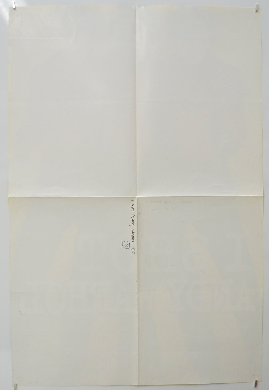 Two additional horizontal fold lines (one near the top going through Taylor’s eye level and the other near the bottom edge just above the logos), and two more extremely faint additional horizontal fold lines (one below the tag line of text through Taylor’s shirt, and the other going through the top of the Andy Warhol text)..this makes a total of 5 horizontal folds and one vertical, extremely mild fold wear (light stress marks on the main two fold lines), a little yellowish print has transferred into the top right of the W in WARHOL, the title has been written on the back in black felt pen and there are some spots of blu-tac grease/residue also on the back (all only noticeable on the front if the poster is held up to the light / backlit), otherwise very good.