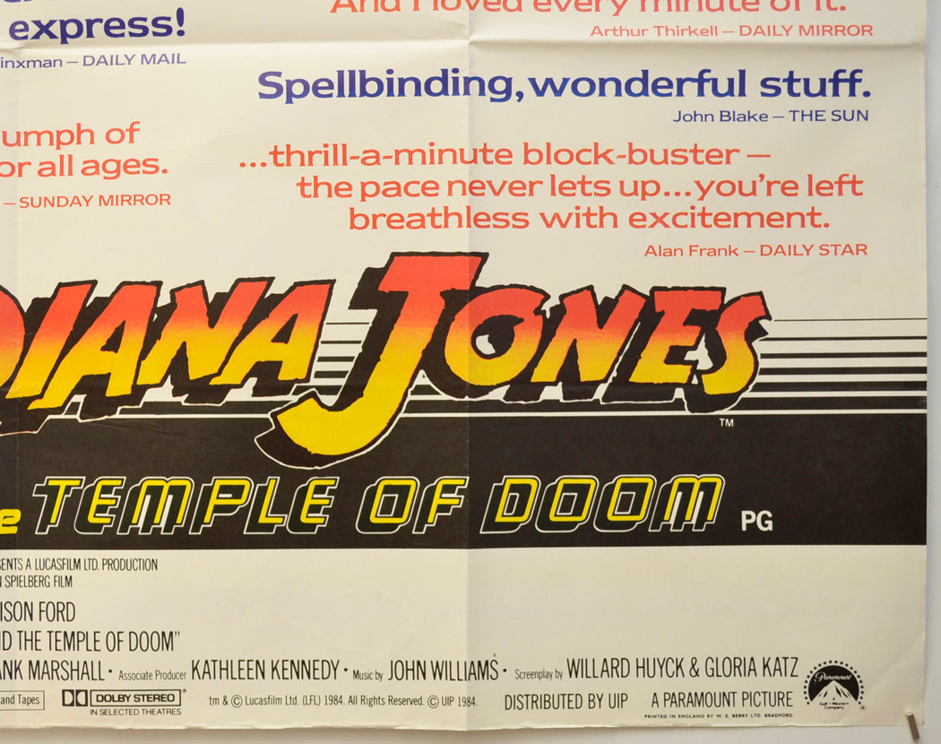 “Indiana Jones And The Temple Of Doom” Original Quad Poster - Film Poster - Movie Poster
