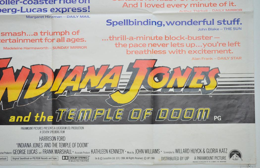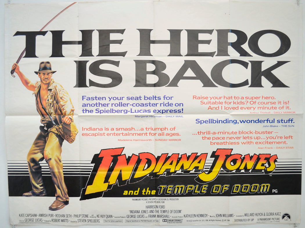“Indiana Jones And The Temple Of Doom” Original Quad Poster - Film Poster - Movie Poster