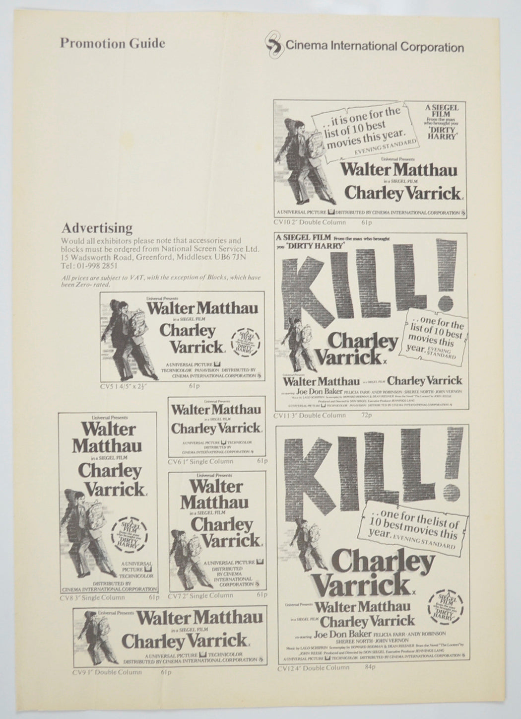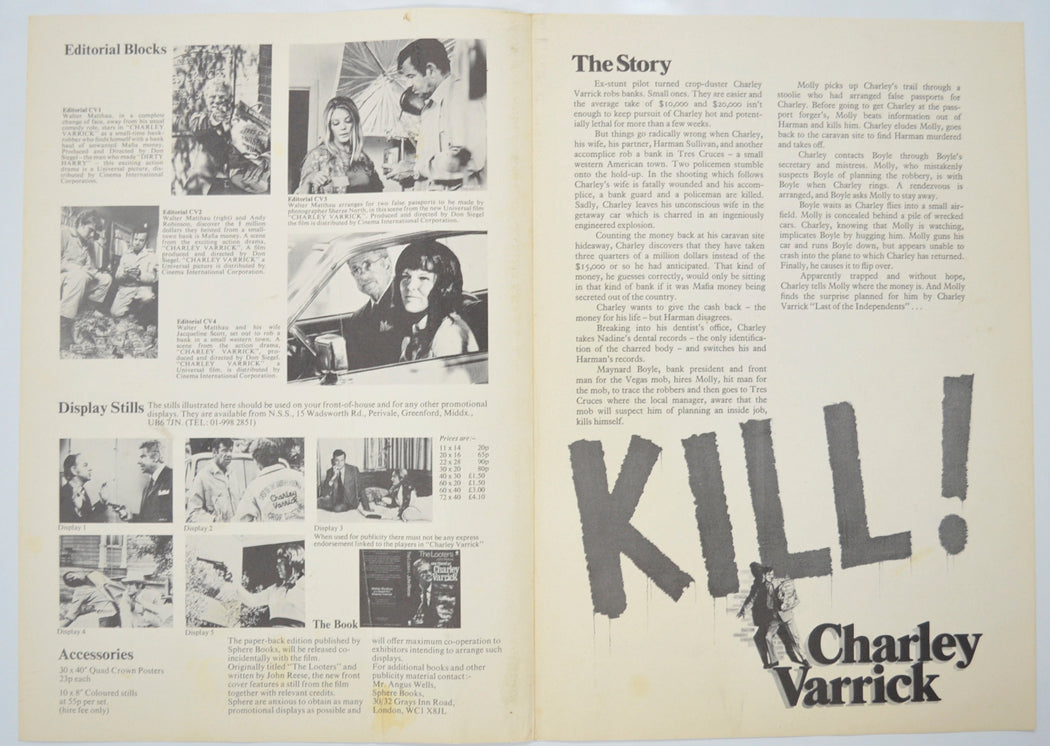 “Kill Charley Varrick” Original 4 Page Cinema Exhibitors Campaign Pressbook (UK)