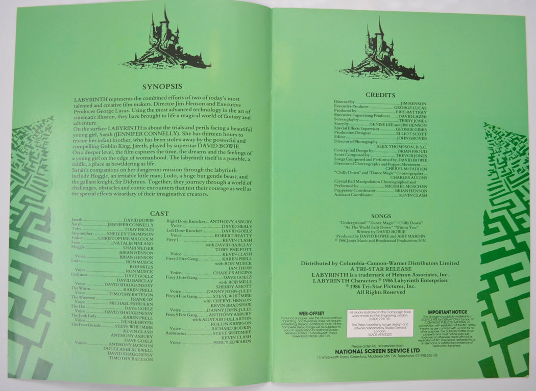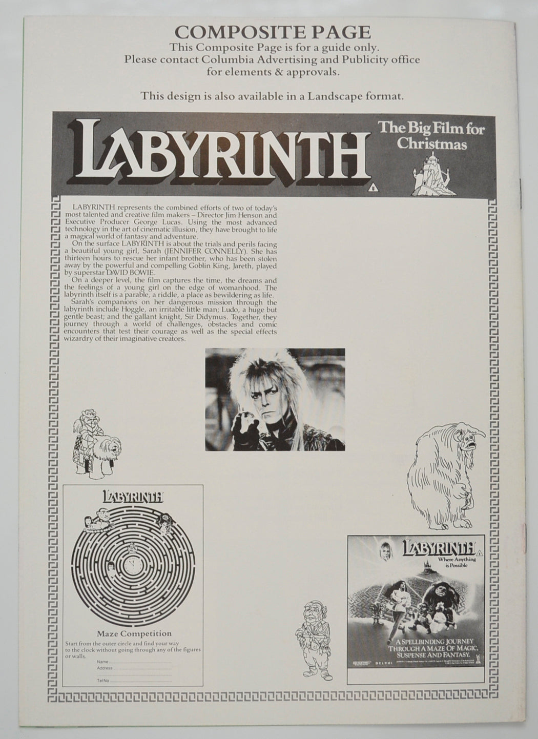 “Labyrinth” Original 8 Page Cinema Exhibitors Campaign Pressbook (UK)