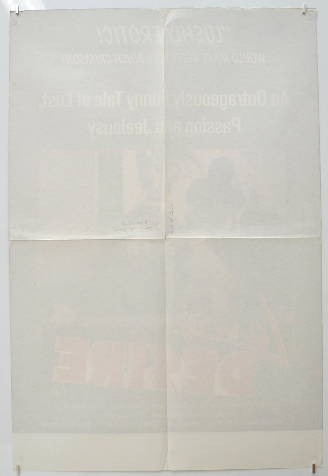 Approximately 3 tiny tears and mild creasing/edge wear on the top edge including creasing to the corner tips, extremely mild creasing at the center of the side edges, 3 cm diagonal crease either side of the top and bottom of the center vertical fold line, pinhole near both top corners, two pinholes near the bottom of both side edges, pinhole just right of the 18 certificate, pinhole in the right black border (level with woman’s elbow), extremely mild fold wear (creasing around the intersection), blu-tac grease/residue on the back of every corner and the title has been written on the back in black Biro (only noticeable on the front if the poster is held up to the light / backlit), otherwise very good.