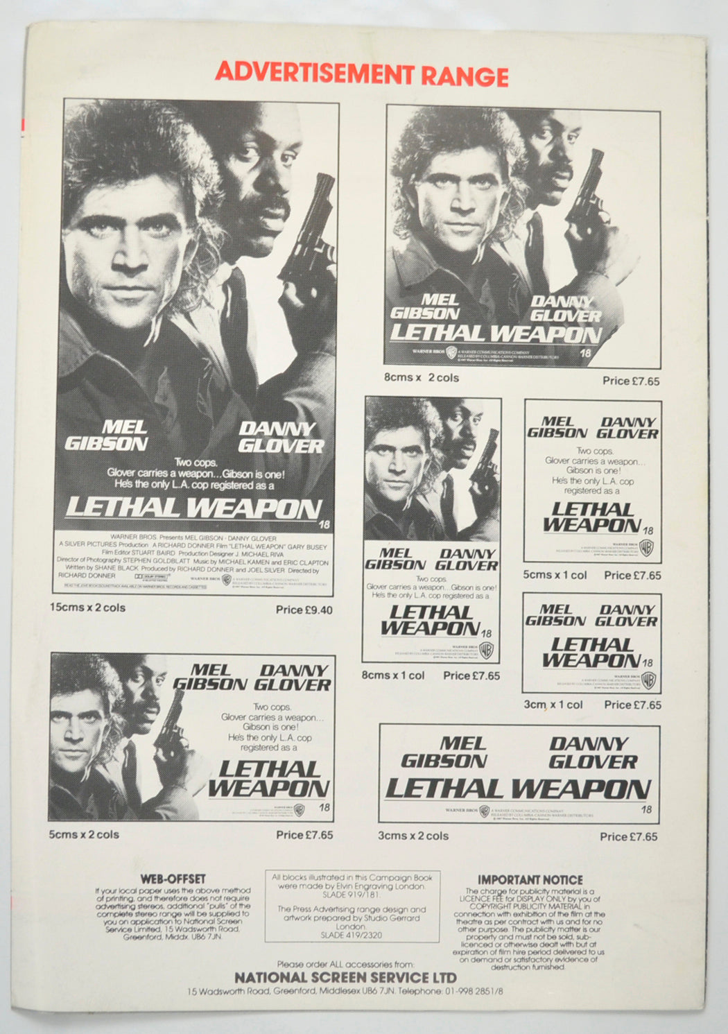 “Lethal Weapon” Original 4 Page Cinema Exhibitors Campaign Pressbook (UK)