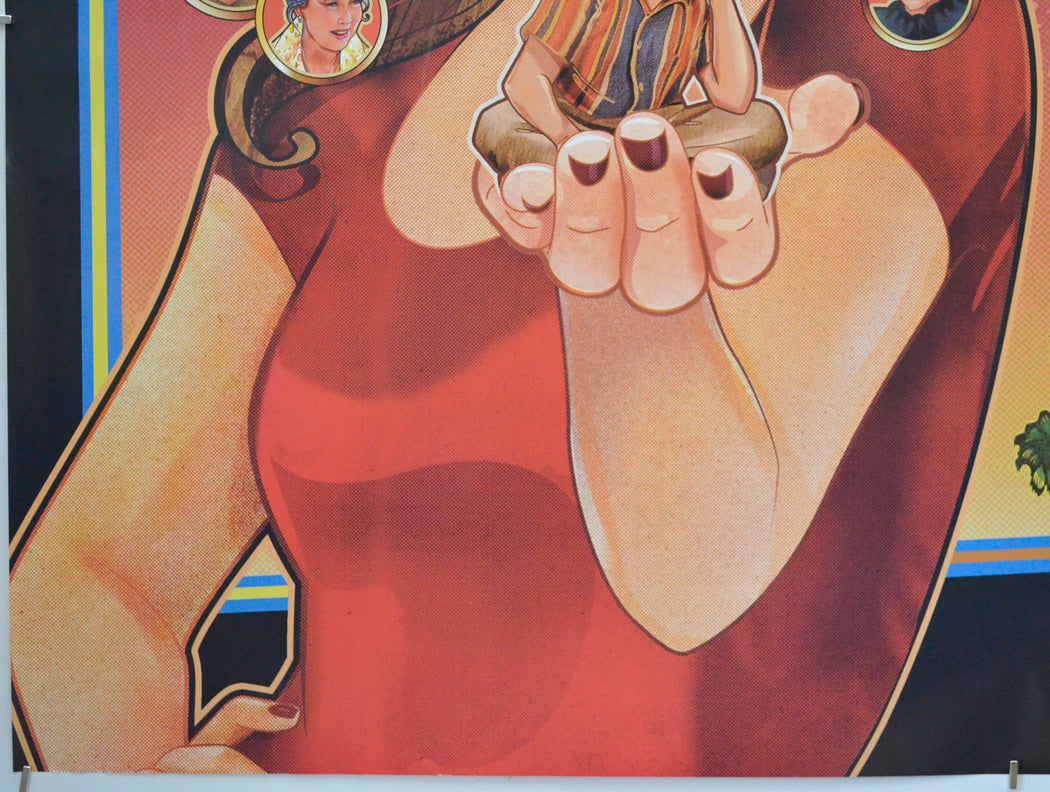 Extremely tiny tear and extremely mild creasing on the top edge, a couple of tiny white surface creases just below the top edge (within Girl’s hair), extremely mild edge wear on the bottom edge, some very light surface creasing near the left edge including some tiny white stress marks within the main artwork area, 25 cm slightly diagonal crease from just left of the main girls left eye down into her hair (has white stress line on it), very light diagonal crease from the top center down towards the main girls shoulder, small patch of blu-tac grease just below first and last word of the IN CINEMA’S NEW YEAR’S DAY text, a few light surface wrinkles here and there (only really noticeable at certain viewing angles), otherwise good.