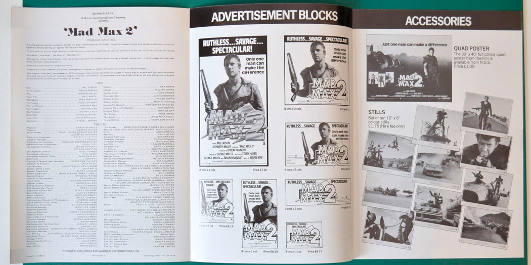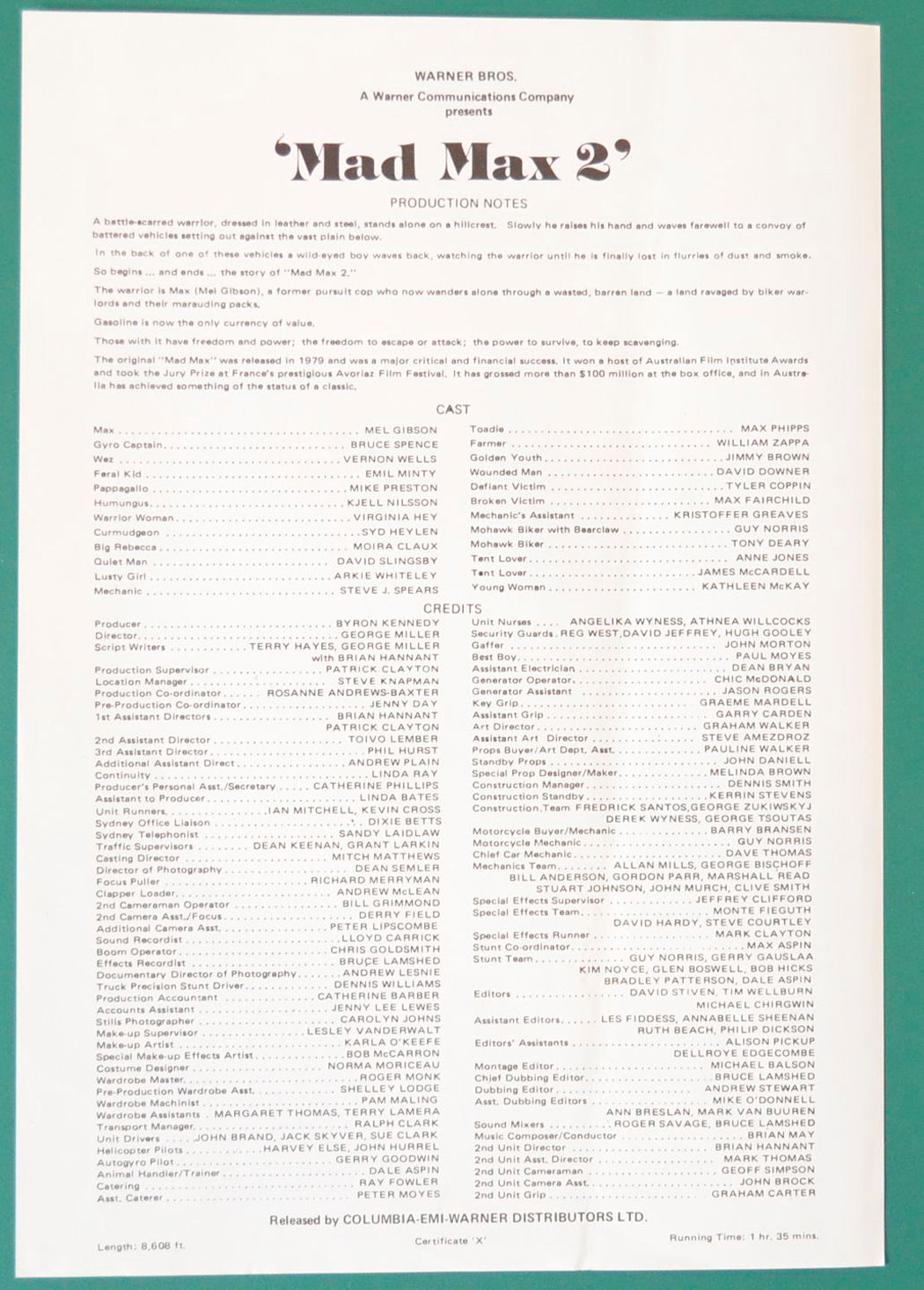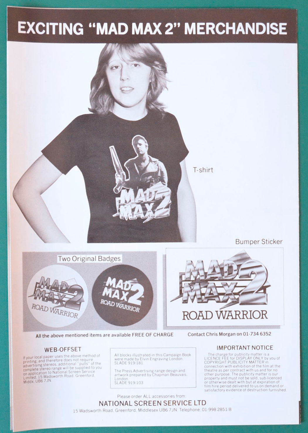 “Mad Max 2” Original 6 Page Cinema Exhibitors Campaign Press Book + Synopsis / Credits Sheet