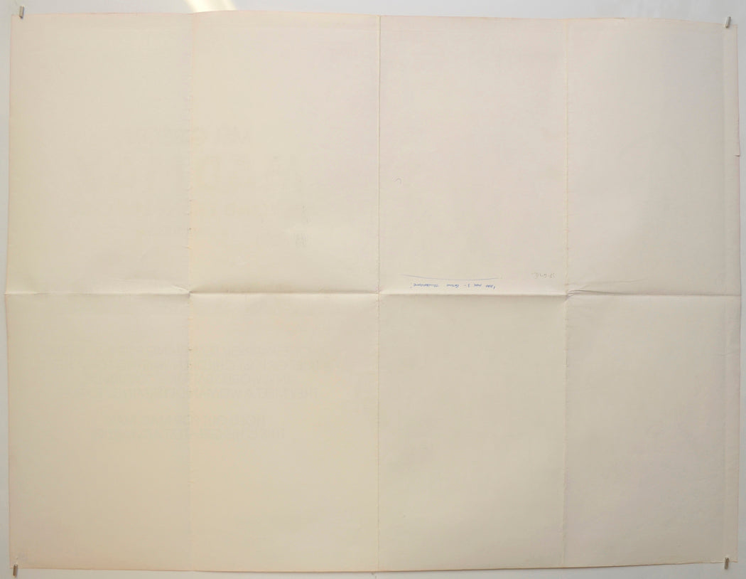 Horizontal crease/fold line across the poster (just below the top edge) and a vertical crease from top to bottom near the left edge (probably due to the poster being put in a frame at some point), four tiny tears on the top edge (left), extremely tiny tear on the right edge, small tear on the bottom edge, 1 cm tear on the left edge, light creasing around the fold intersections, title written on the back in biro (only noticeable on the front if the poster is held up to the light / backlit), remnants of a small sticker on the back of the bottom left corner (not noticeable on the front) otherwise excellent!