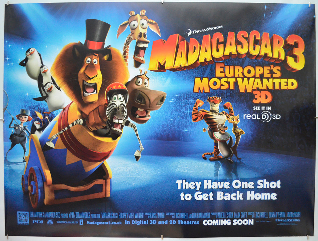 “Madagascar 3 - Europe’s Most Wanted” Original Quad Poster - Film Poster - Movie Poster