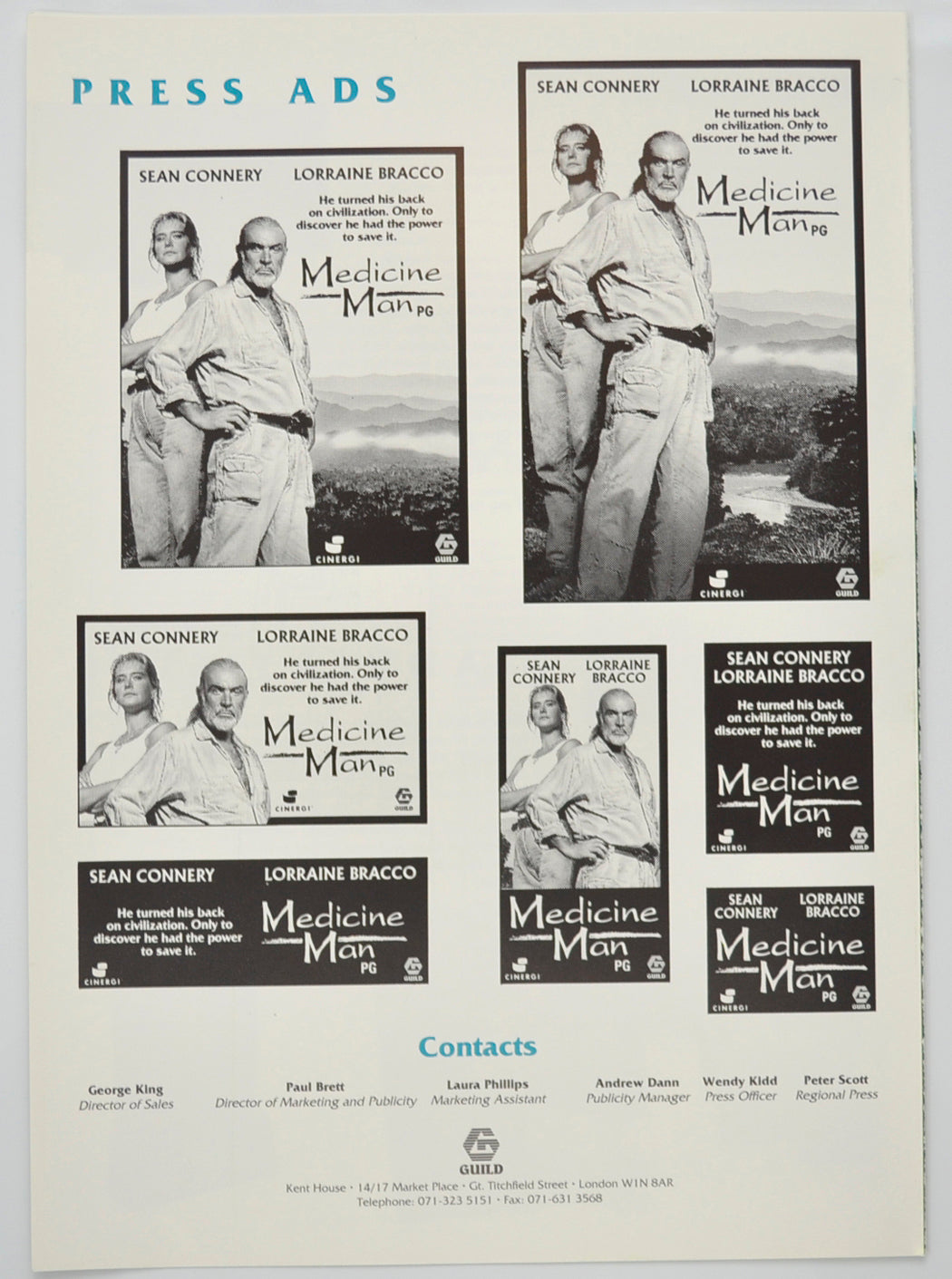“Medicine Man” Original 4 Page Cinema Exhibitors Campaign Pressbook (UK)