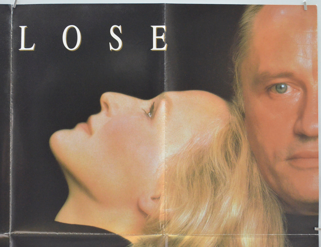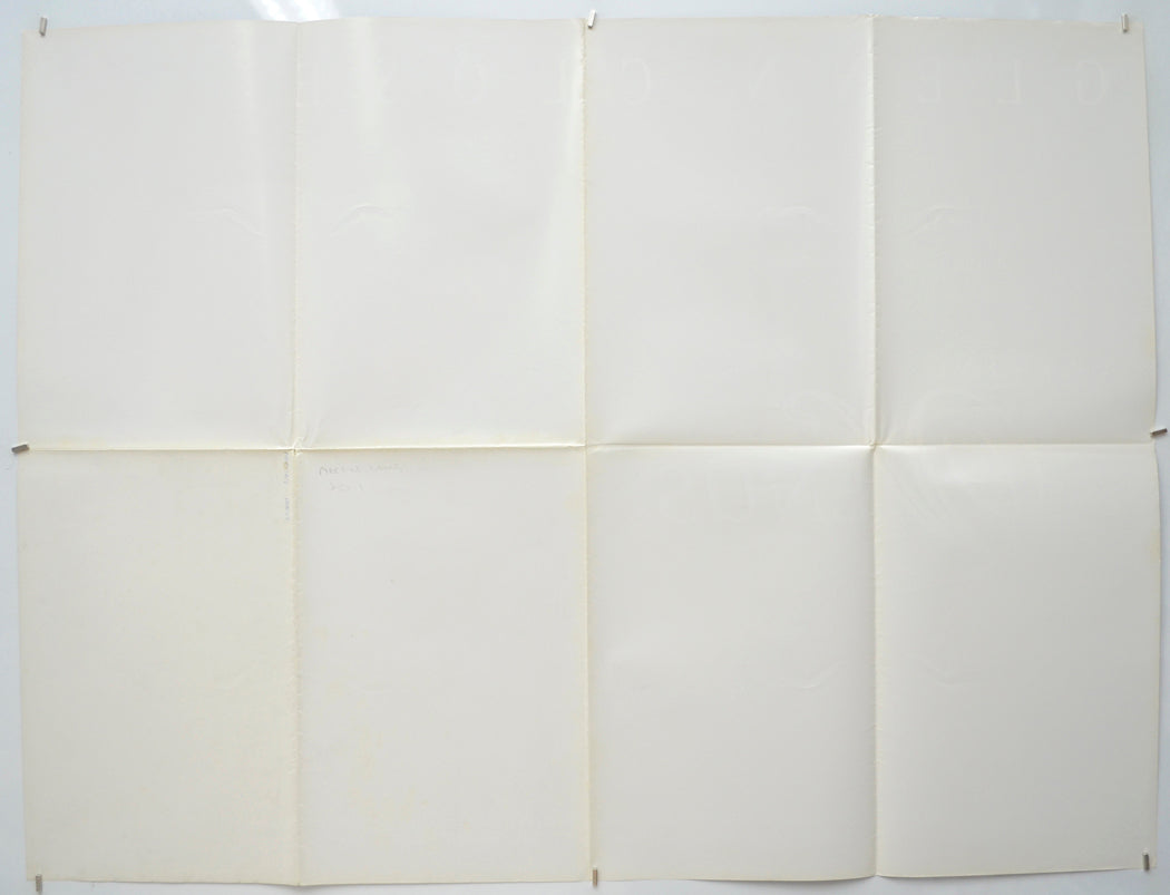 Tiny crease across the tip of the top left corner, extremely mild creasing on the bottom edge, small crease across the bottom left corner, extremely mild edge wear on the left edge, two small white surface creases either side of the bottom half of the left vertical fold line (below the title) and another two either side of the bottom half of the right vertical fold line (below close’s hair), two light surface creases either side of the top half of the left vertical fold line (through the last betrayal text), and another two either side of the top half of the right vertical fold line (within close’s nose and forehead), mild fold wear (white stress marks on the fold lines), the title has been written on the back in blue Biro and the back of a couple of the fold lines have yellowed slightly (only noticeable on the front if the poster is held up to the light / backlit), some faint patches of damp on the back of the bottom right fold segments (not noticeable on the front), otherwise very good.