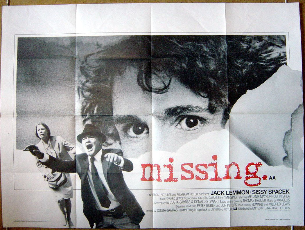 Jack Lemmon, Sissy Spacek, Melanie Mayron, John Shea, Charles Cioffi, David Clennon, Richard Venture, Jerry Hardin, Richard Bradford, Joe Regalbuto, Keith Szarabajka, John Doolittle, Janice Rule, Ward Costello, Hansford Rowe, Tina Romero, Richard Whiting, Martin LaSalle, Terence Nelson, Robert Hitt, Felix Gonzalez, M. E. Rios, Jorge Russek, Edna Nochoecha, Alan Penwrith, Alex Camacho, M. Avilla Camacho, Kimberley Farr, Elizabeth Cross, Piero Cross, Gary Richardson, Josefina Echanove, Albert Cates, Jacqueline Evans, John Fenton, Jaime Garza, Colonel Jorge Mancilla, Antonio Medellan, Jorge Santoyo, Linda Spheeris, Mario Valdez, Gerardo Vigil, Juan Vazquez
