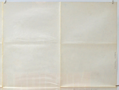 1.5 cm tear across the top right corner, extremely tiny tear on the top edge (near left corner), extremely mild creasing on the right edge, Browning/Brown spots of damp (foxing) at the bottom of the right edge and a little on the tip of the bottom left corner, extremely mild fold wear (light creasing around and between some of the fold intersections) note there are three horizontal and three vertical folds, slight Browning/Brown spots of damp (foxing) on the back of the center vertical fold line and a little along the back of the left quarter of the center horizontal fold (only noticeable on the front if the poster is held up to the light / backlit), the title has been written on the back of the right edge in black Biro (again only noticeable on the front if backlit), otherwise excellent!Double Sided :