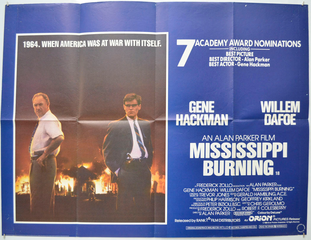 “Mississippi Burning” Original Quad Poster - Film Poster - Movie Poster