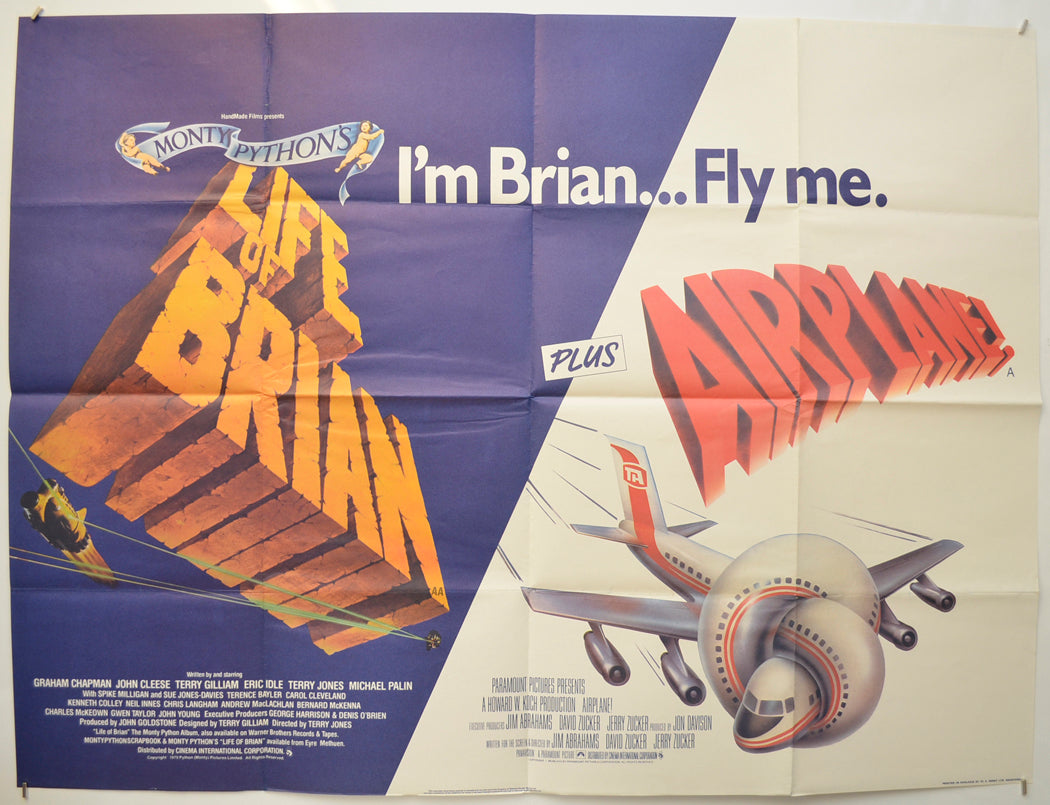 “Monty Python’s Life Of Brian / Airplane” (Double Bill) Original Quad Poster - Film Poster - Movie Poster