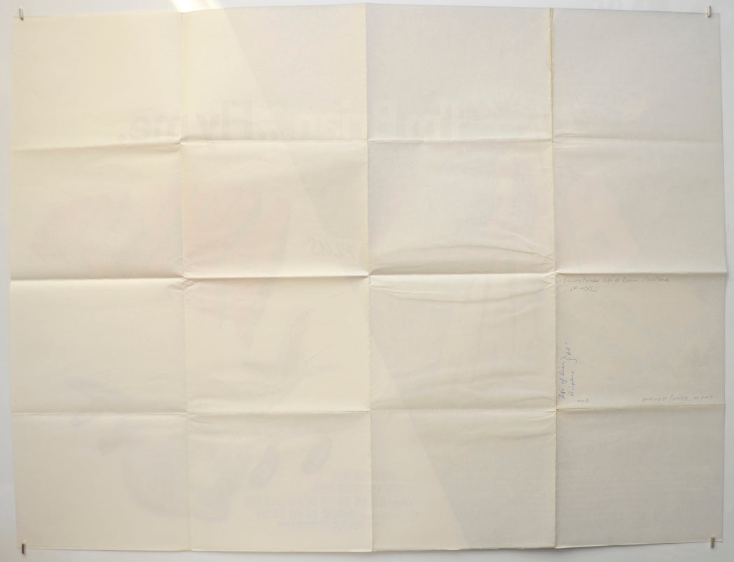 Extremely tiny tear and extremely mild creasing on the bottom edge, a little blue print has transferred onto the right half of the three horizontal fold lines, faint line of blue print in the white background just below the top edge (right), extremely mild fold wear including a couple of tiny tears on the left vertical fold (note there are three horizontal and three vertical folds), light creasing between the left and center vertical fold lines (either side of the center horizontal fold), title written on the back in Biro and the back of the left vertical fold has browned slightly (only noticeable on the front if the poster is held up to the light / backlit), otherwise very good!
