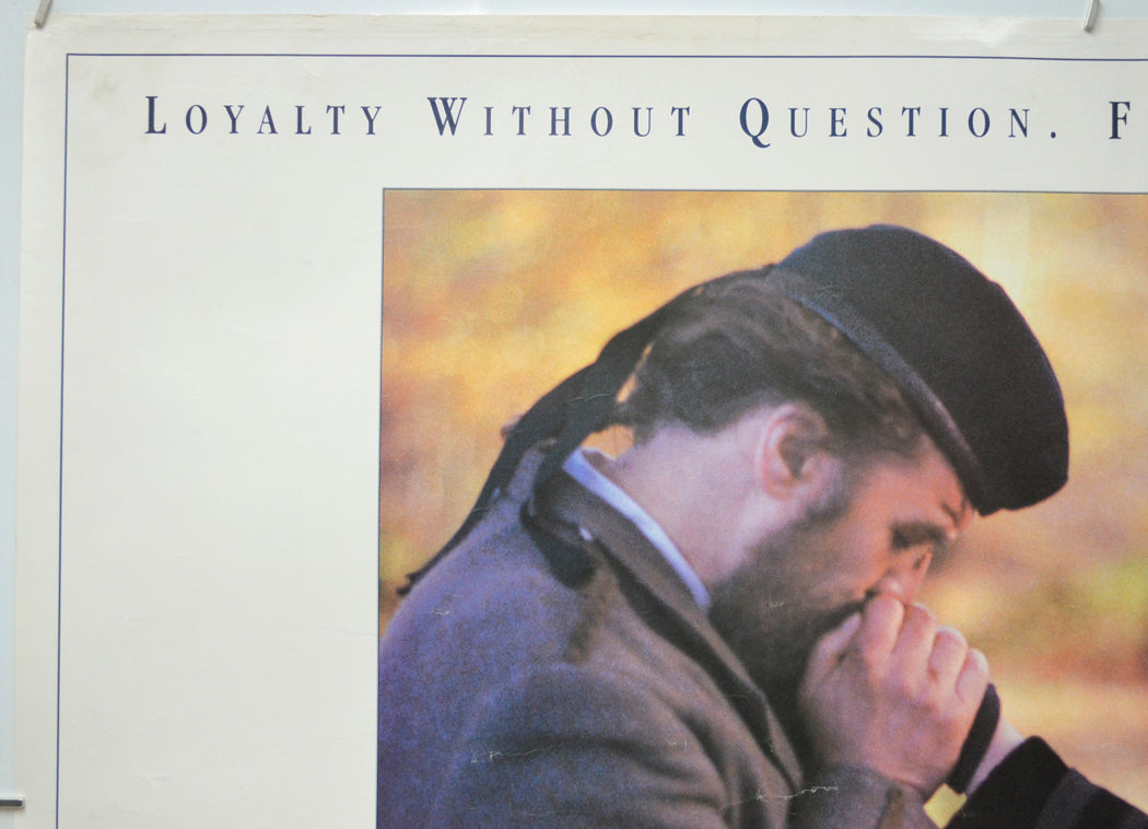 Three horizontal creases within the top border (completely across the poster) probably caused by a cinema frame and some dark print has transferred onto the creases, 2 cm diagonal crease across the top left corner, extremely mild creasing on the top edge, very mild creasing on the other edges, a couple of light brownish finger smudges? Near the bottom left corner, the surface is lightly wrinkled/creased throughout (this does include some white stress marks through the main image.. including a 4 cm crease just left of Conolly’s wrist and a couple small creases within Dench’s face), some light fingermarks near both top corners, otherwise good.
